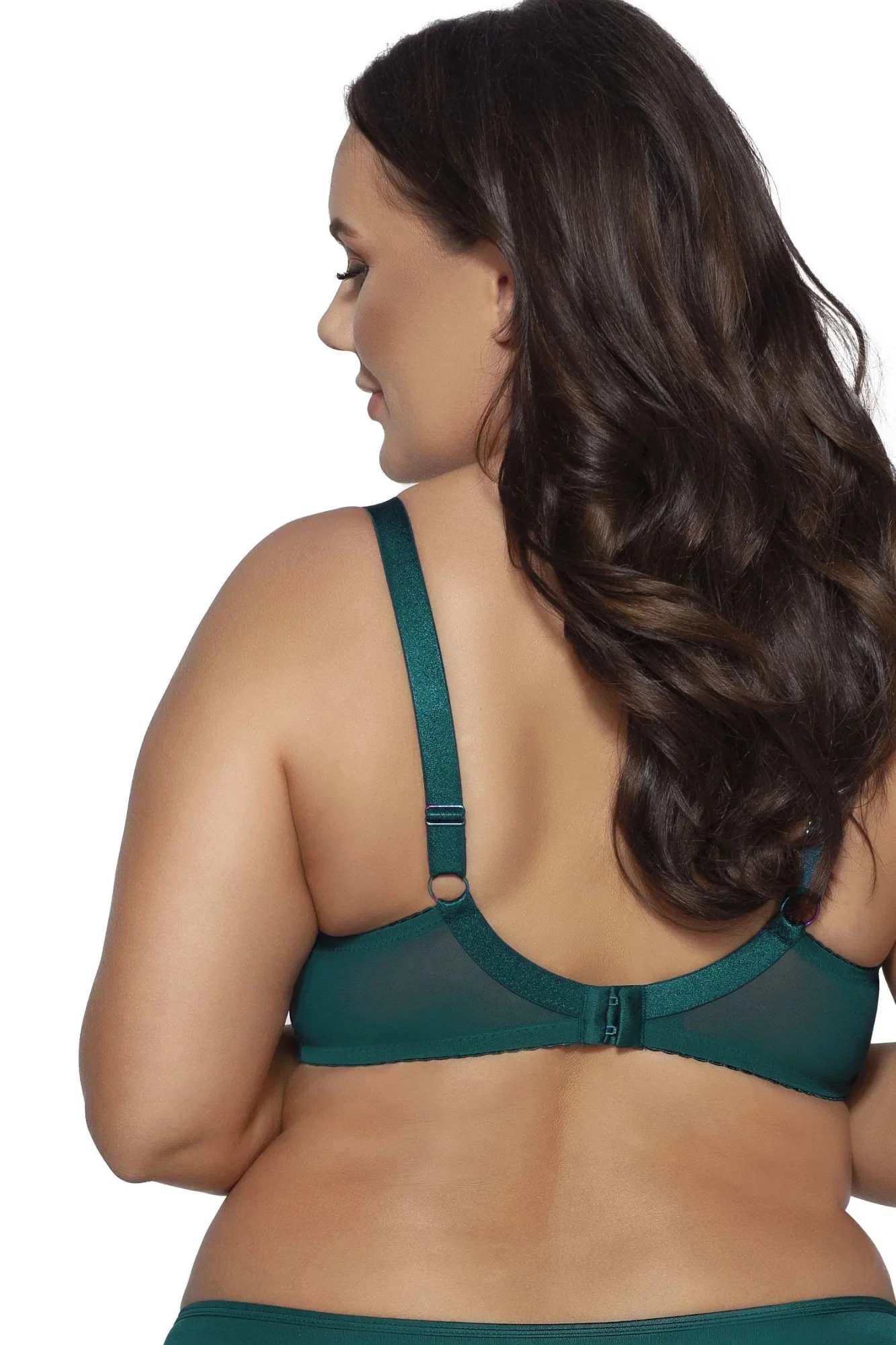 Dámská podprsenka 2087 Rafia AVA - smaragdová barva - typ semi soft - košíčky podšité měkkou, béžovou pěnou - zdobené jemnou výšivkou - elastický transparentní obvod - zapínání na dva nebo tři háčky s třístupňovým nastavenímMateriálové složení: 88% polyamid + 8% bavlna + 4% elastan