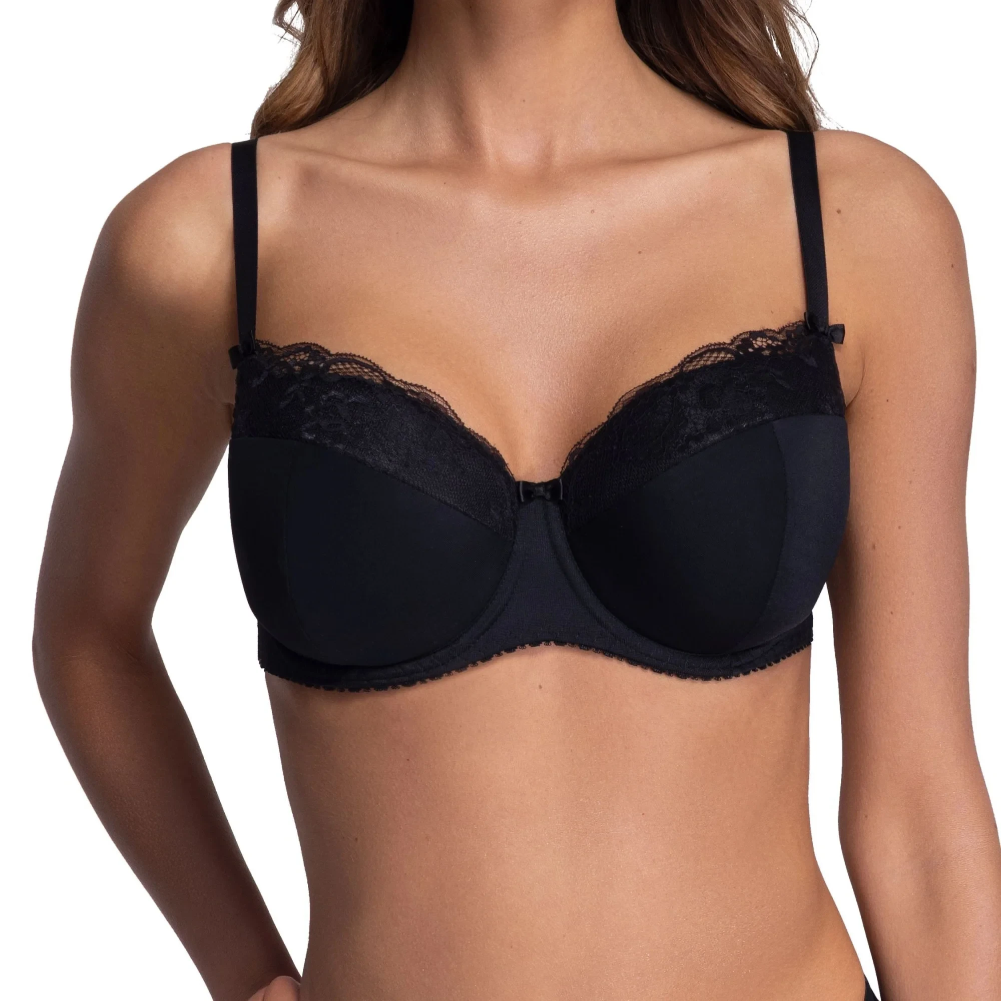 Dámská podprsenka 2112 Azalea plus AVA - černá barva - typ full cup - z hladkého mikrovlákna - horní část košíčků zdobená krajkou - vyztužená kosticemi - ramínka posuvná a neodepínatelná - zapínání na dva nebo tři háčky s třístupňovým nastavením
