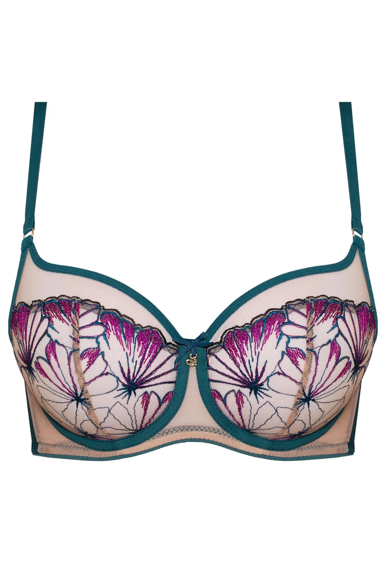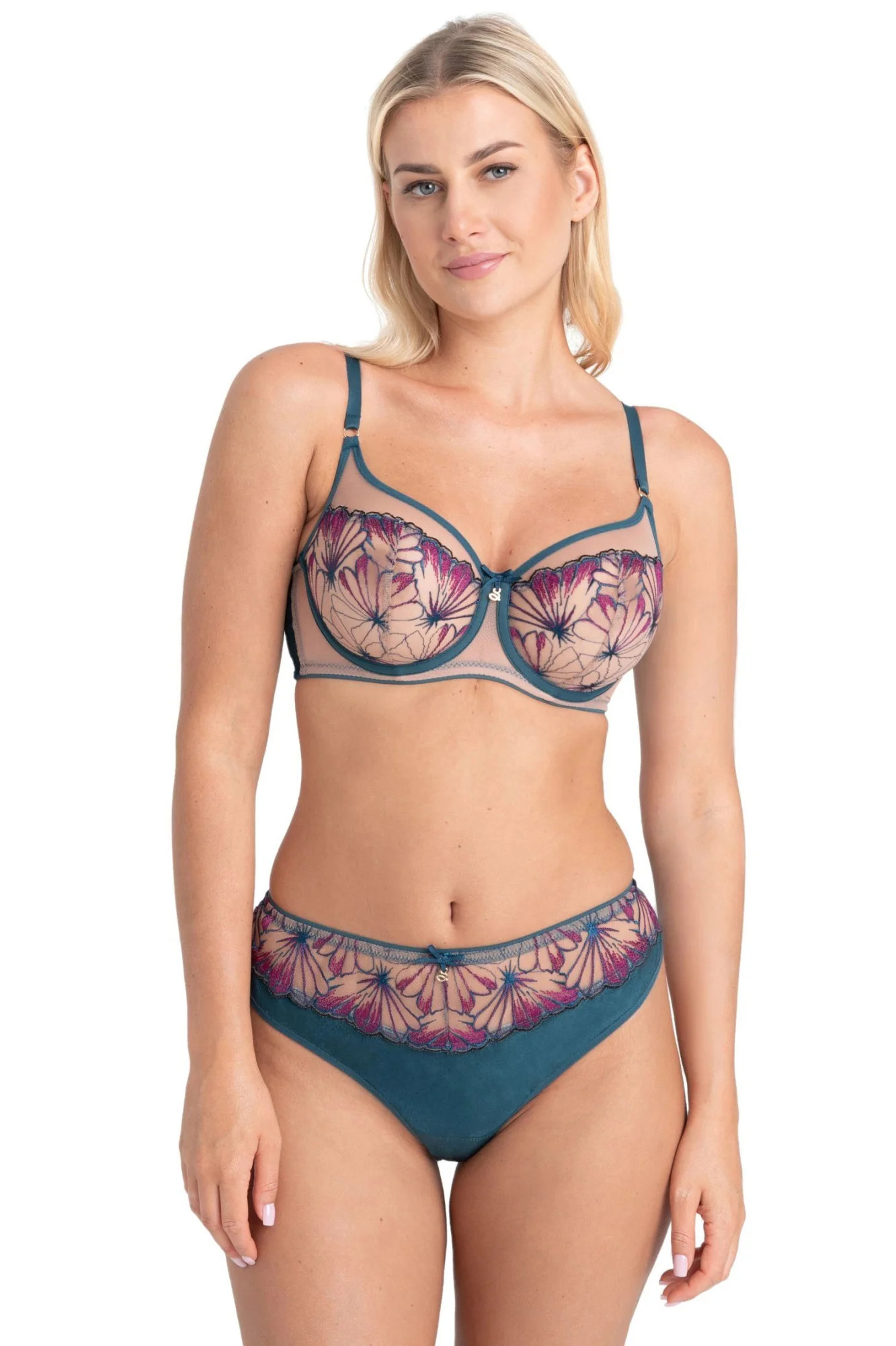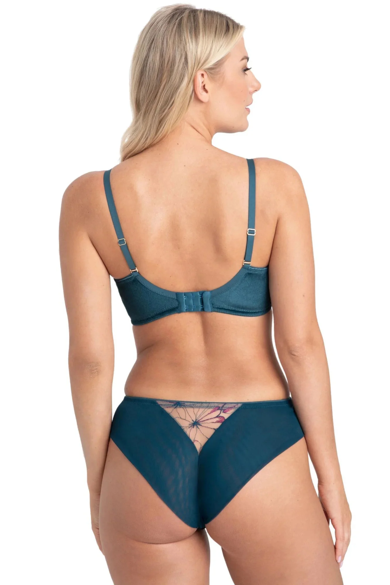 Dámská podprsenka Olette A143 Samanta - modrá barva - typ soft - z výšivky s květinovým motivem - košíčky podšité hladkým tylem - s kosticemi - nastavitelná a neodepínatelná ramínka - zapínání na dva háčky s třístupňovým zapínáním - certifikát Oeko-Tex STANDARD 100®