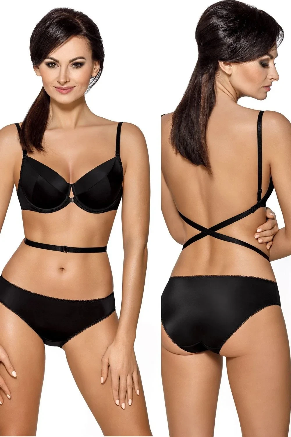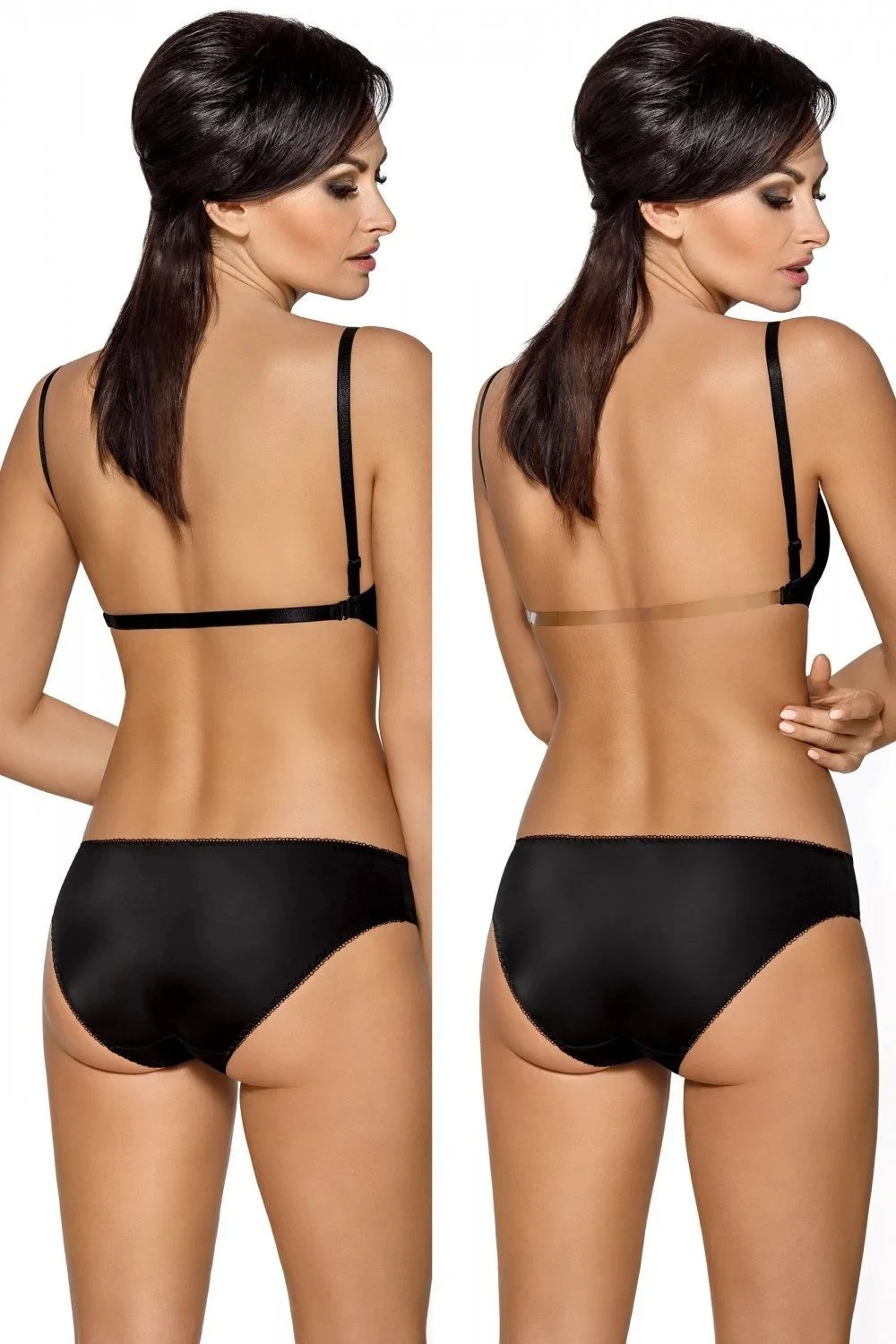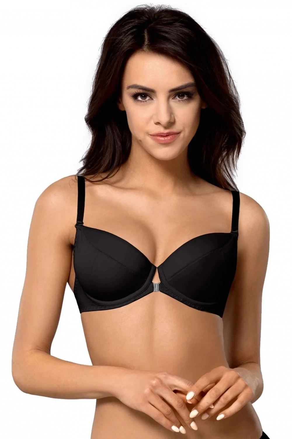 Dámská podprsenka 146/69 Annie AVA - černá barva - typ push-up - hluboce vykrojené košíčky lemované sametovým vláknem - vyztužené lehkou pěnou - rozdělení na tři části dodávají prsům mírně zaoblený tvar - součástí jsou tři typy ramínek - klasické, silikónové a prodloužené