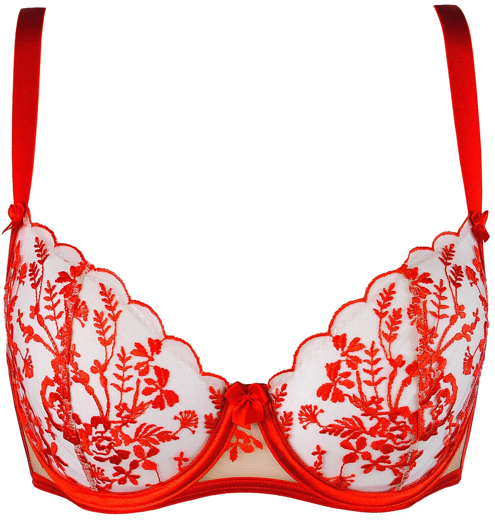 Tato měkká podprsenka, okouzlující jemnou výšivkou, je návrhem pro ženy, které ocení sofistikovaný design a nejkvalitnější látky. Balkonetní střih krásně zdůrazní krásu dekoltu a měkké látky pohladí pokožku. Tento střih je ideální pro větší velikost poprsí, poskytuje ideální pohodlí a rozkošný vzhled. Kombinace béžového pozadí a ženské červené výšivky dodává celku kouzlo.