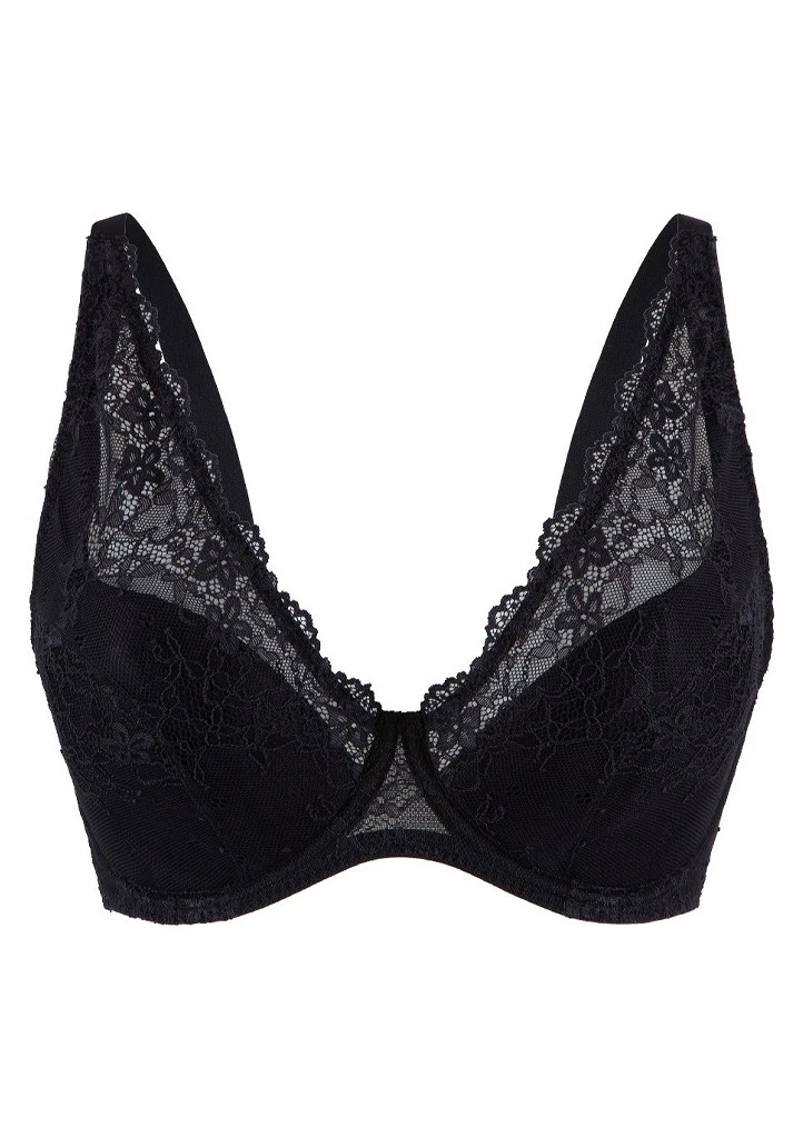 Elegantní černá podprsenka s jemnou krajkou, která vyniká nadčasovou elegancí a perfektním střihem. Košíčky jsou mírně vyztužené a doplněné o kostice, které poskytují spolehlivou oporu a krásně tvarují dekolt. Ramínka jsou snadno nastavitelná a zapínání je na tři háčky se čtyřmi pozicemi, takže si podprsenku pohodlně přizpůsobíte své postavě. Stylový kousek, který nesmí chybět v žádném šatníku – ideální pro každodenní nošení i speciální příležitosti.