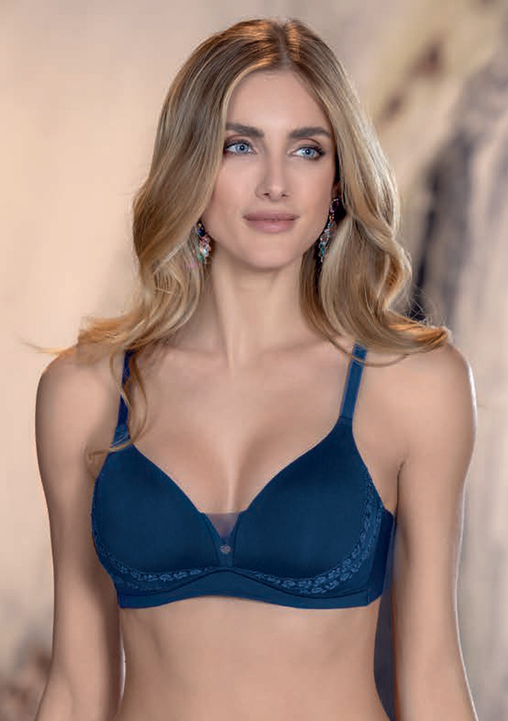 Dámská podprsenka Leilieve v elegantní tmavě modré barvě nabízí pohodlný střih s jemně vyztuženými košíčky, které přirozeně vytvarují dekolt. Boční kostice zajišťují lepší oporu a stabilitu během celého dne. Decentní krajkový detail působí žensky a dodává modelu na eleganci. Ramínka jsou délkově nastavitelná a obvod se zapíná na dva háčky se čtyřmi pozicemi pro perfektní přizpůsobení. Ideální volba pro ženy, které hledají komfort a zároveň krásný, nadčasový vzhled.