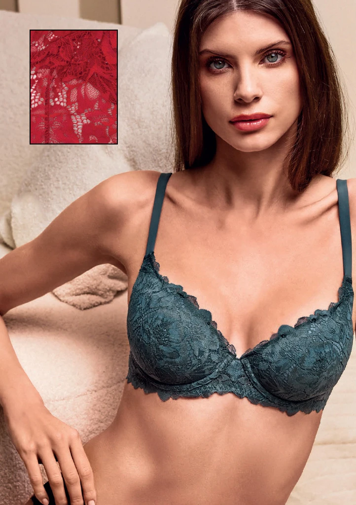 Elegantní krajková podprsenka Lormar v krásné sytě červené barvě působí výrazně a velmi žensky. Košíčky jsou vyztužené a doplněné kosticí, díky čemuž poskytují skvělou oporu i přirozeně vytvarovaný dekolt. Jemná krajka s květinovým motivem dodává podprsence luxusní vzhled a příjemně přiléhá k tělu. Ramínka jsou délkově nastavitelná pro dokonalé přizpůsobení. Ideální volba pro ženy, které hledají spojení pohodlí, elegance a krásné barvy.