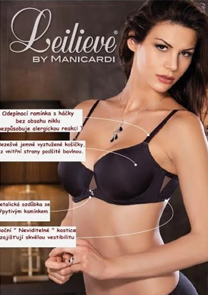 Hladká podprsenka kolekce Elegance značky Leilieve. Podprsenka je mírně vyztužená a díky vyššímu středu krásně padne i na větší poprsí. Podprsenka má odepínatelná ramínka a délkově nastavitelná ramínka. Díky většímu podílu bavlny je podprsenka vhodná pro celodenní nošení. Podprsenka patří mezi novinky roku 2014 z výroby značky Leilieve. Materiálové složení: 81% polyamid, 19% elastan.