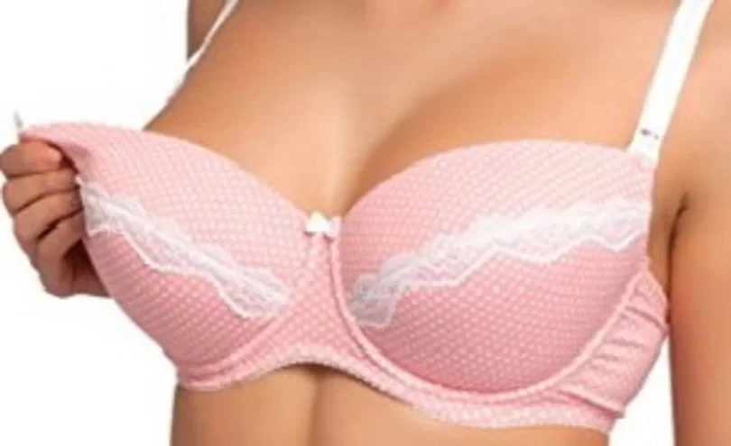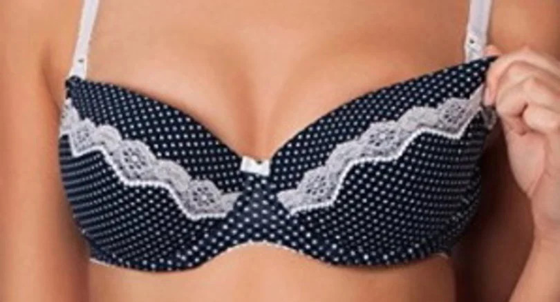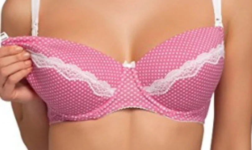 Podprsenka pro kojící ženy, která je vyrobená z pěkné puntíkované látky.