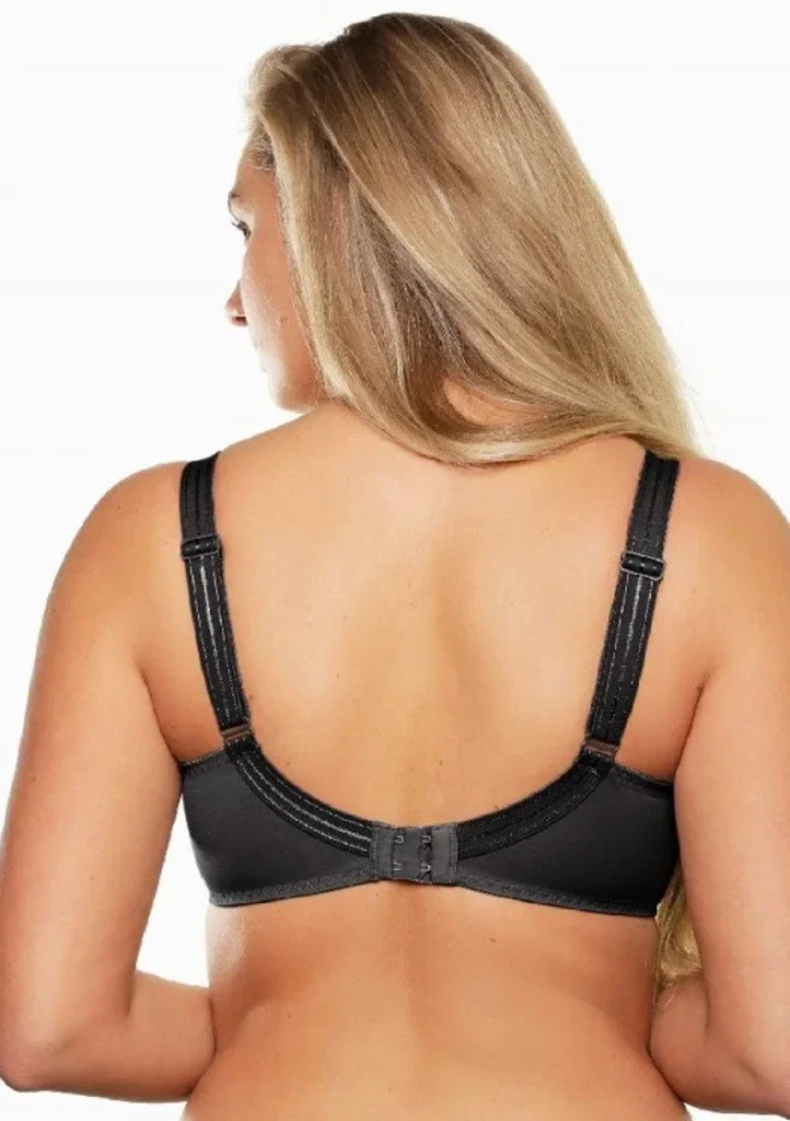 Nevyztužená podprsenka od značky Linga Dore. Košíčky jsou částečně dvojitě podšity a mají kostici pro lepší oporu prsou. Ramínka jsou široká a lehce nastavitelná, zdobená leskými proužky. Obvod zapínatelný na dva háčky ve třech liniích. Design v jemném micru vyzdvihuje jednoduchou, ale technicky vybroušenou linii podprsenky.