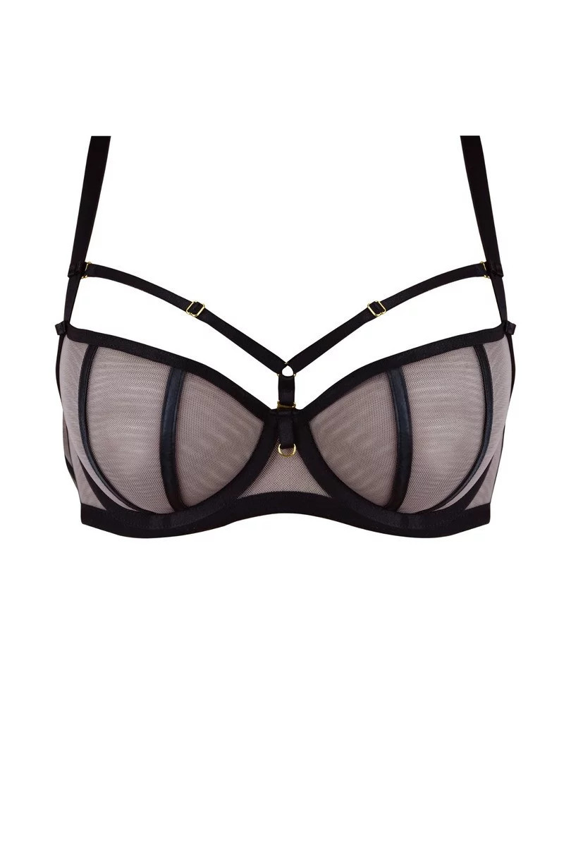 Košíčky jsou vyrobené ze síťoviny. Saténové lemovky překrývají svislé švy. Střih a konstrukce modelu dokonale zvýrazňují poprsí. Ozdobné pásky, které je možné odepnout, pěkně zdobí dekolt.