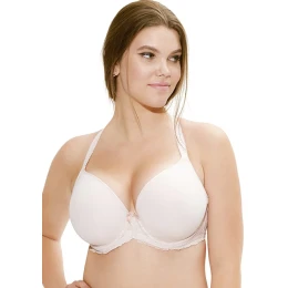 Proslulá britská D+ značka Panache přináší ve své kolekci Sculptresse podprsenku Sasha. Tato podprsenka nadchne své majitelky krásnou zapudrovaně růžovou barvou a muldovaným měkkým košem potaženým velmi jemným mikrovláknem. Dále určitě také dostatečně širokými a podloženými ramínky, které se na zádech dají zapnout jedním háčkem k sobě (typ "boxer") a jsou nastavitelná, kdy se díky svým ozdobným rýhám ani ve velkých velikostech opravdu ani nepohnou. Střed podprsenky je vysoký a zdobený saténovou mašličkou. Střed a spodní část pod košíčky, která na bocích pokračuje do obvodu je z velmi decentní krajky, která je podšita jemným tylem. Obvod je zapínatelný na dva háčky ve třech řadách a zapínání je měkce podloženo. Dokonalá volba pro dámy s větším poprsím, které ve své velikosti marně hledají něžnost decentní růžové, jemně muldovaný koš, mírné zdobení krajkou, dokonalé zpracování detailů - zejména důkladnou podporu obvodu a zajištění ramínek.