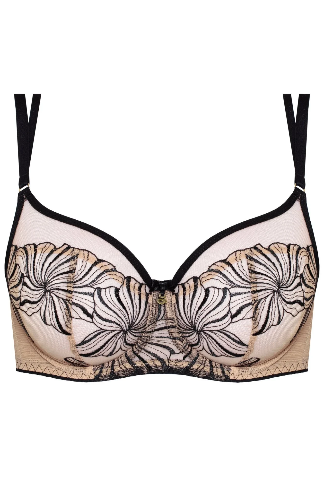 Dámská podprsenka Roma A143 Samanta - černá barva - typ soft - z výšivky s květinovým motivem - košíčky podšité hladkým tylem - s kosticemi - nastavitelná a neodepínatelná ramínka - zapínání na dva háčky s třístupňovým zapínáním - certifikát Oeko-Tex STANDARD 100®