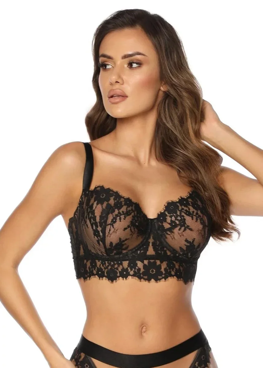 Dámská podprsenka SC-1069 Flower Lilly Černá - Kinga