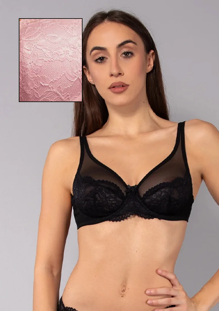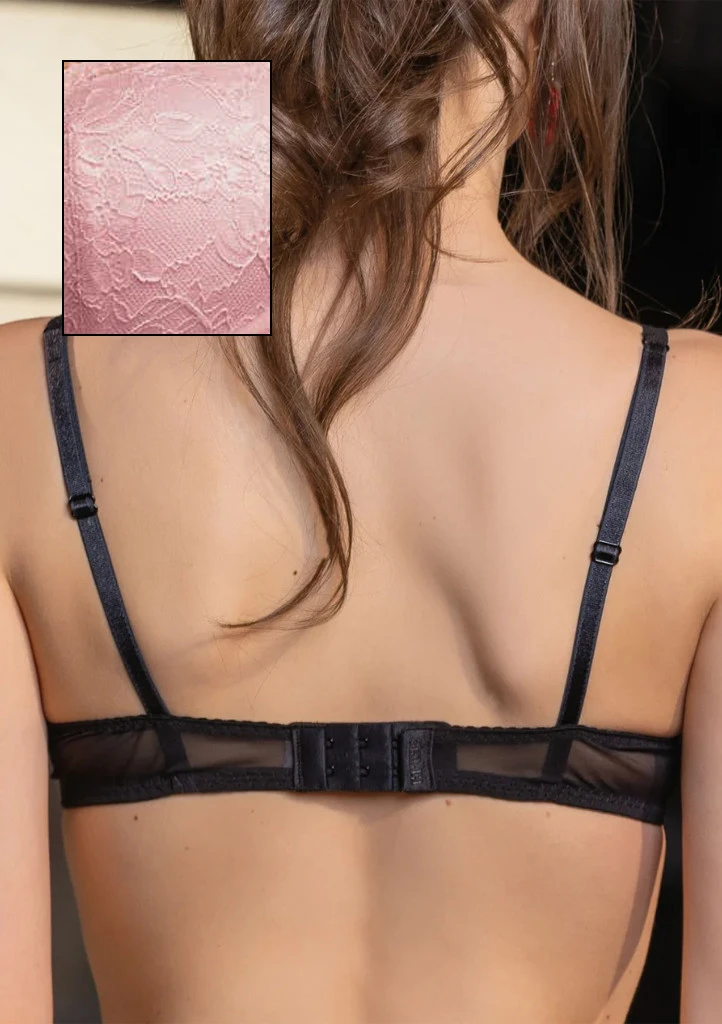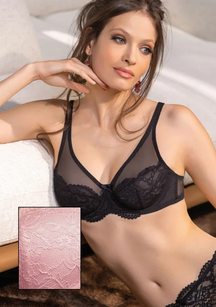 Dámská podprsenka Siélei v jemně růžové barvě působí romanticky a elegantně. Je nevyztužená, s kosticí, která zajišťuje přirozenou oporu a krásný tvar poprsí. Zdobí ji jemná krajka v kombinaci s transparentními detaily, které dodávají modelu lehkost a ženskost. Zapínání na dva háčky a čtyři pozice umožňuje pohodlné nastavení obvodu.