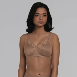 Pohodlná, měkká podprsenka bez kostic značky Anita. Vyrobená z "prodyšného", pro tělo příjemného mikrovlákna, zdobeného květinovou výšivkou na tylu. Třídílná konstrukce košíčků s bočními lištami dokonale tvaruje poprsí. Široké, měkce podšité ramenní popruhy zmírňují tlak na ramena a krk. Zajišťuje nejvyšší komfort nošení v kombinaci s dokonalou podporou i velkých prsou.
