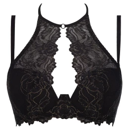 Jedinečná černo-zlatá podprsenka v podobě smyslného topu V-8261 vám zamotá hlavu! Jedinečný střih a měkkost látek doplní vaši krásu a zaručí vám maximální pohodlí. Zapínání za krkem na háčky a očka, bez ramínek. Do sady doporučujeme tanga V-8265 a punčochy V-8264.