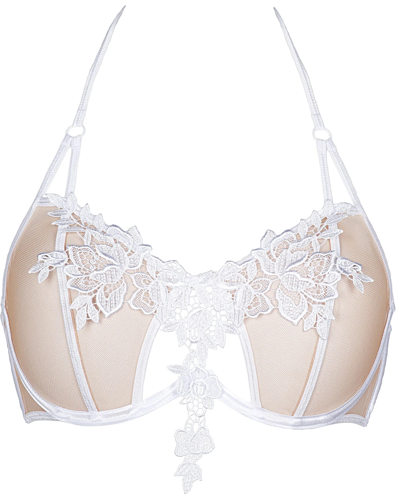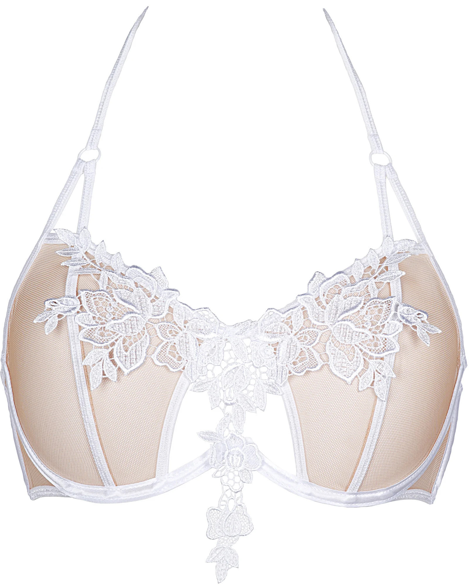 Exkluzivní a fascinující měkká podprsenka V-8851 je avantgardním designem, novinkou v naší nabídce. Lehký a průhledný béžový tyl s bílým vyšívaným motivem zvýrazní krásu vašeho dekoltu. V kompletu s podvazkovým pásem V-8852 a šňůrkami V-8858 vypadá fenomenálně. Podprsenka se zavazuje za krkem. Vzadu má zapínání na háčky a očka. Materiálové složení: 100% polyester