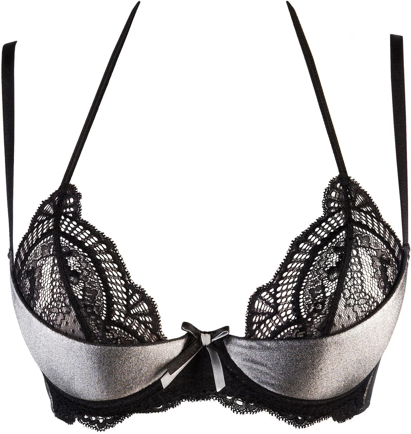 Zajímavá podprsenka V-9481 překvapí magnetizujícím stříbrným leskem látky na košíčcích. Ideální, pokud hledáte oslnivé a jedinečné spodní prádlo. Černé a stříbrné mašle dodávají šatům nádech sofistikovanosti a elegance. Model se zavazuje za krkem a má neodnímatelná ramínka. Standardní nastavení.