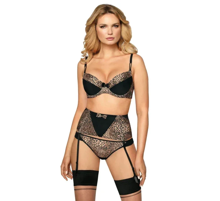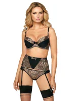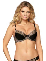 Dámská podprsenka Zoje ROZA - černá barva - z elastického materiálu s leopardím vzorem a hladkého mikrovlákna - vyjímatelné push up vycpávky - odepínatelná ramínka
