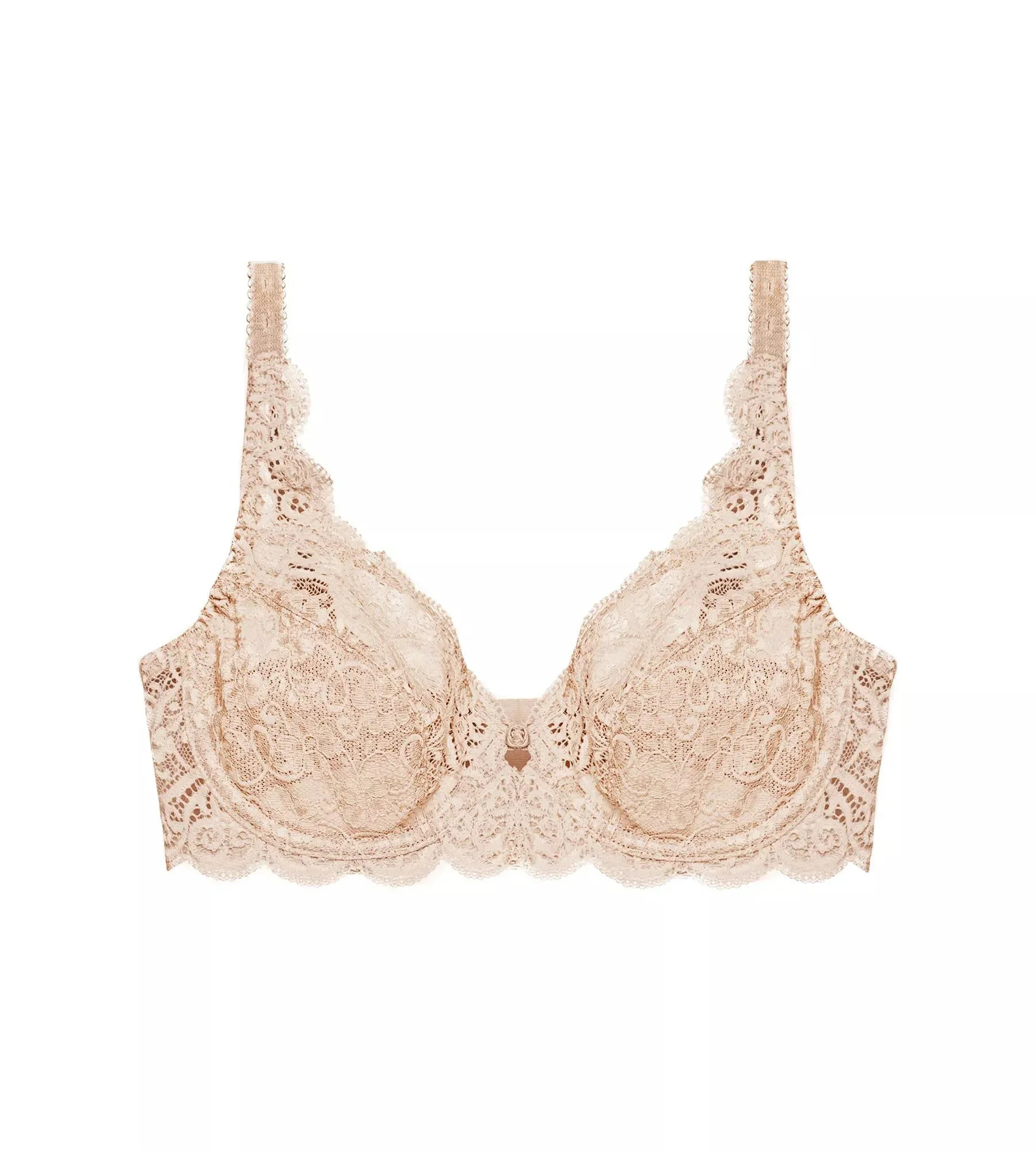 Tato úžasně pohodlná podprsenka z průsvitné krajky z řady Triumph Amourette 300 nabízí svůdně moderní vzhled.