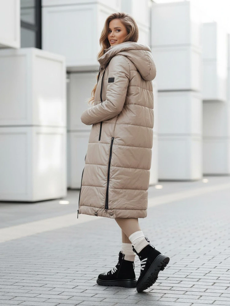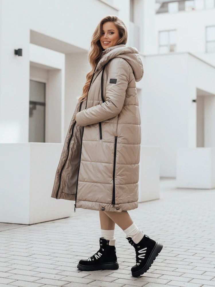 Wygodna, pikowana kurtka o długości midi, idealna na sezon przejściowy. Ochroni przed wiatrem i zapewni komfort noszenia dzięki praktycznym detalom oraz regulacji obwodu dołu. Klasyczny krój uzupełnia odpinany kaptur, co zwiększa funkcjonalność kurtki.