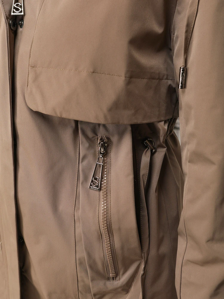 Přechodová bunda parka kombinuje funkční střih s každodenním pohodlím. Dvojité zapínání usnadňuje přizpůsobení se počasí a stylu nošení. Nastavitelný pas umožňuje zvýraznit vaši siluetu nebo vám dodá ležérnější tvar. Kapuce a praktické kapsy podporují pohodlí při městských aktivitách.