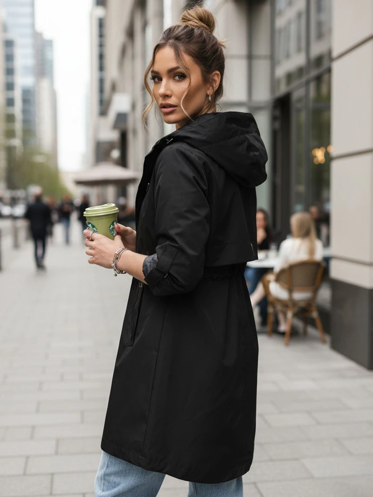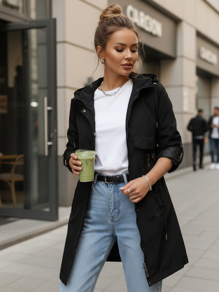Přechodová bunda parka kombinuje funkční střih s každodenním pohodlím. Dvojité zapínání usnadňuje přizpůsobení počasí a stylu nošení. Nastavitelný pas umožňuje zvýraznit siluetu nebo dodat ležérnější tvar. Kapuce a praktické kapsy podporují pohodlí při městských aktivitách.