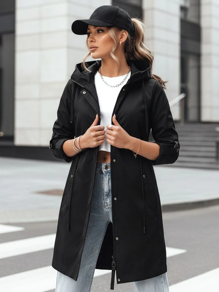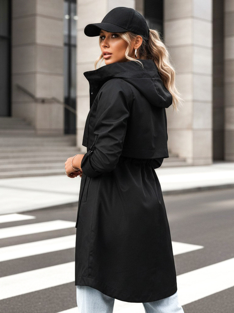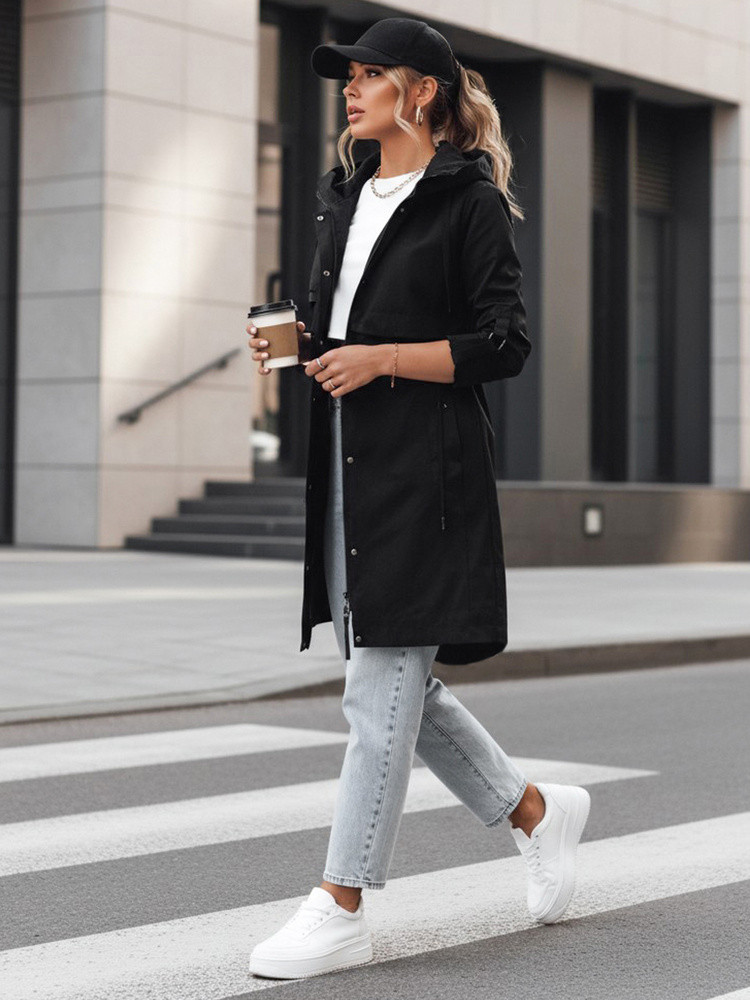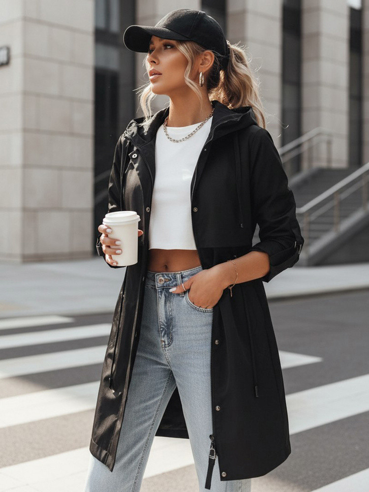 Tato lehká dámská bunda byla navržena pro každodenní použití v přechodném období. Prodloužený střih s nastavitelným pasem umožňuje přizpůsobit siluetu vašim individuálním preferencím. Kapuce zvyšuje funkčnost při proměnlivém počasí. Jednoduchý design usnadňuje vytváření městských stylizací.