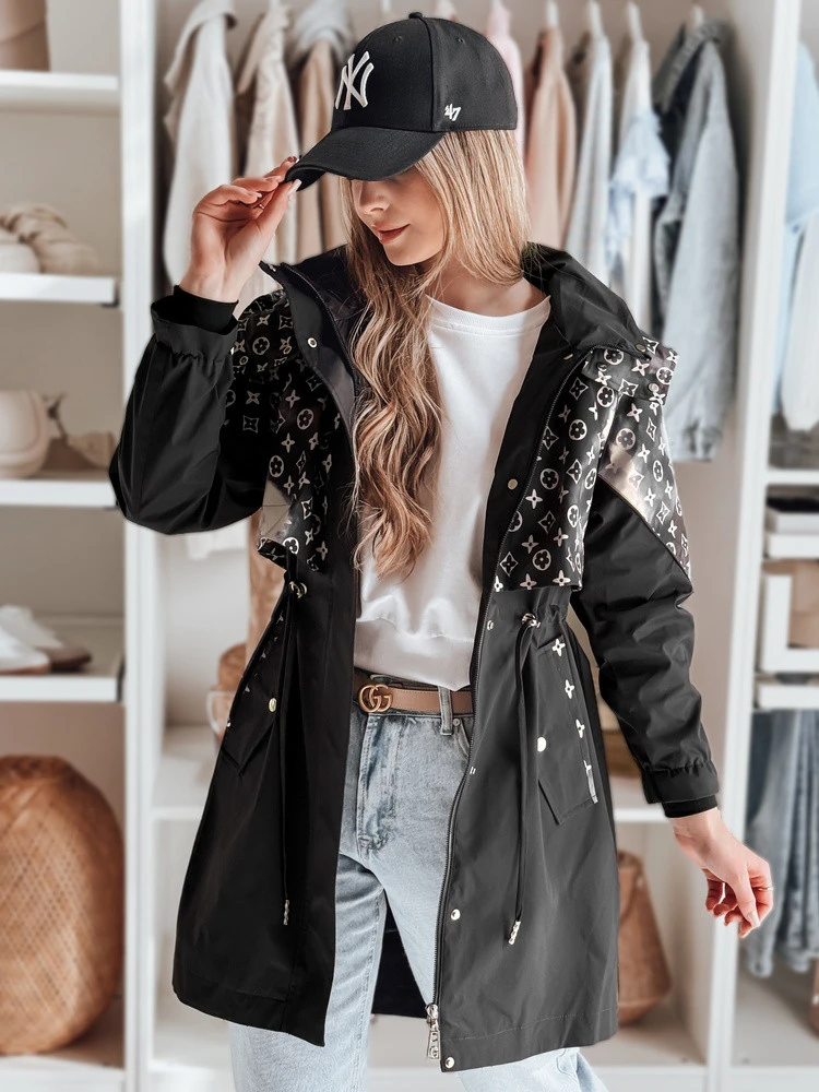 Módní přechodná parka s výraznými detaily, které jí dodávají jedinečný vzhled. Nastavitelný pásek zvýrazňuje pas, zatímco neodnímatelná kapuce dodává praktičnost. Zapínání na zip a patentky zajišťuje pohodlné nošení. Ideální pro každodenní styling v městském klimatu, skvělá volba pro jarní období.