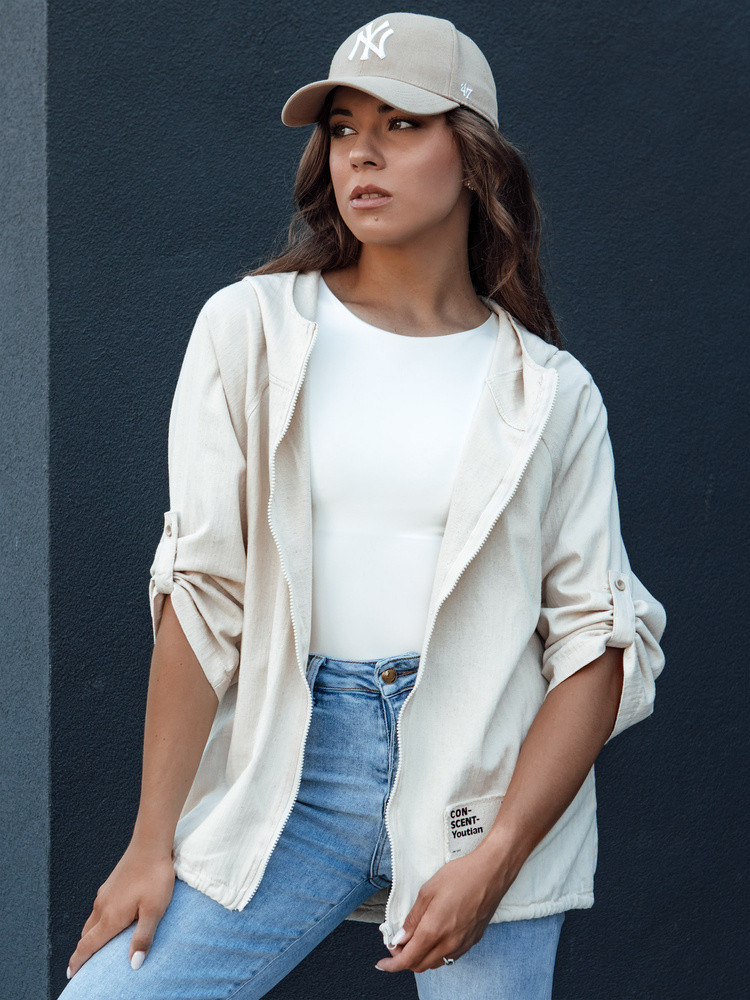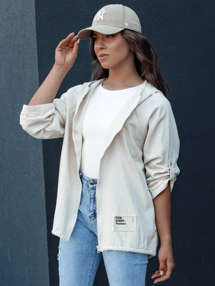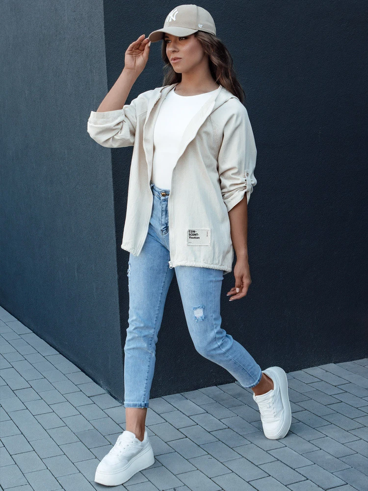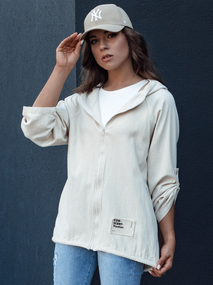 Dámská přechodná bunda s kapucí MANDIA light beige FashionStreet TY4479