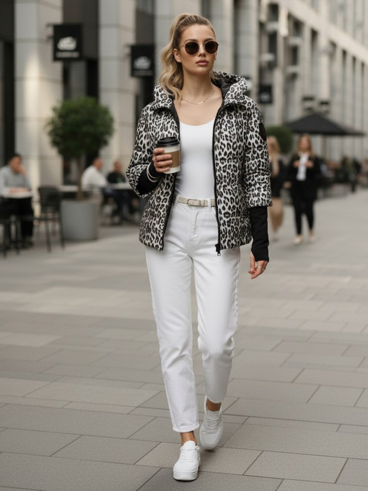 Dámská přechodná bunda s leopardím vzorem bílá FashionStreet TY5548