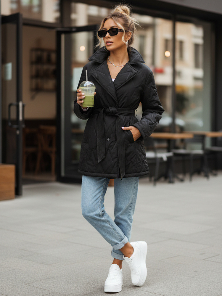 Dámská přechodná bunda s páskem černá FashionStreet TY5588