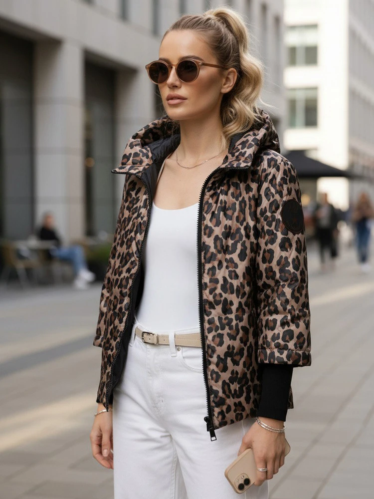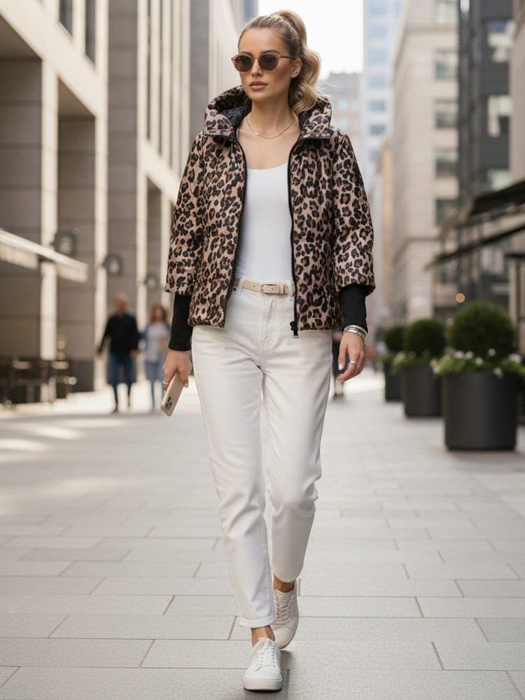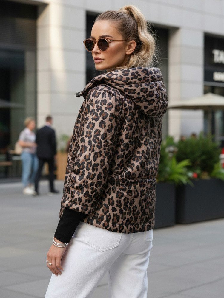 Dámská přechodná bunda s leopardím vzorem TY5549 béžová