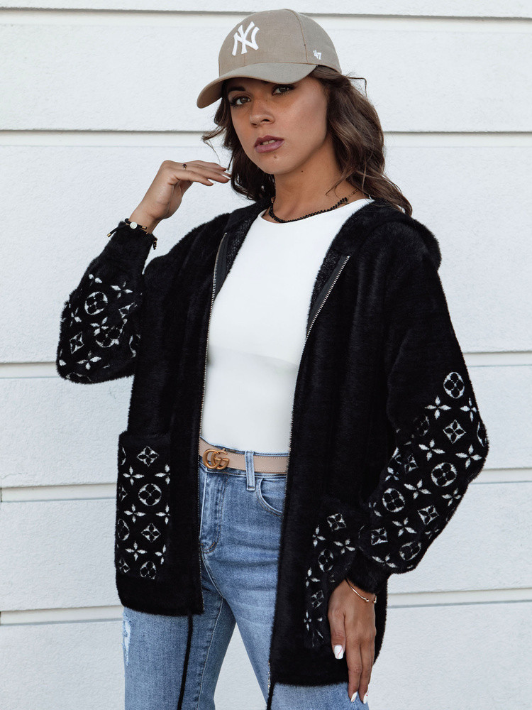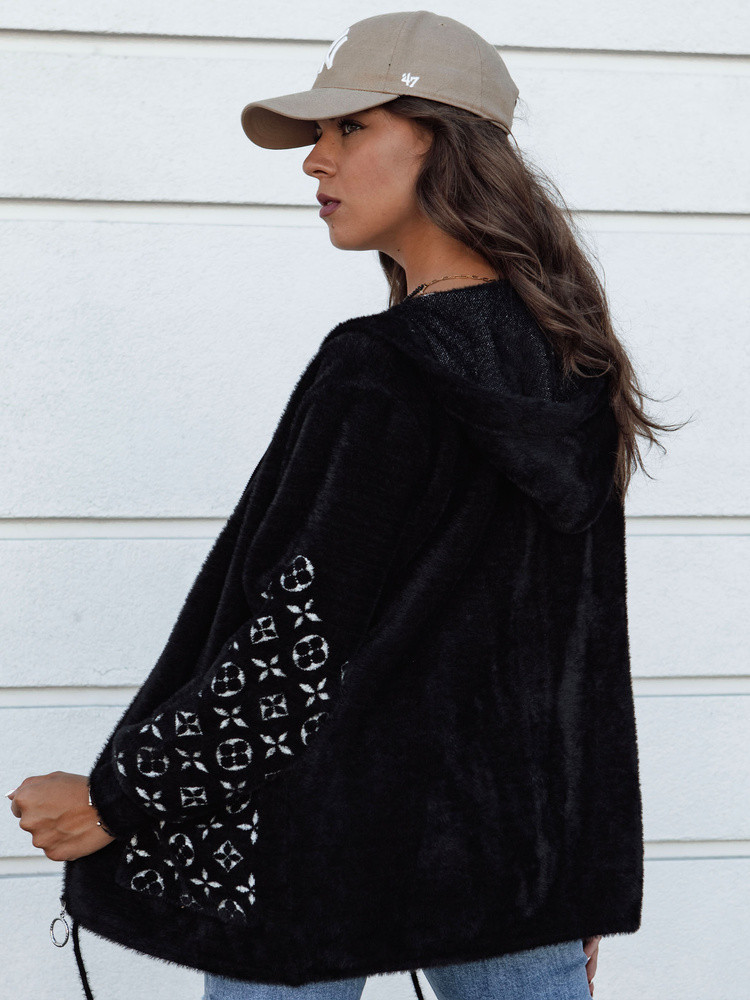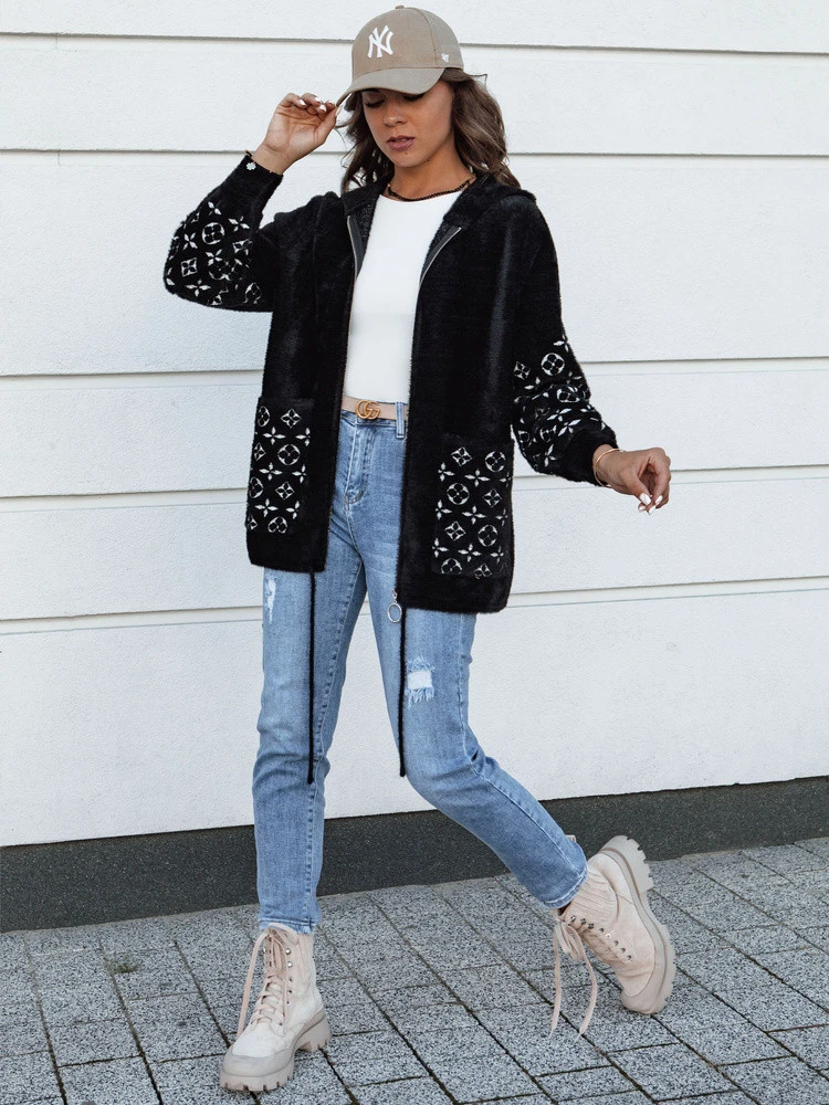 Kurtka a'la alpaka o kroju oversize, której charakteru dodaje modny print umiejscowiony na kieszeniach jak i na rękawach. Posiada efektownie wyglądający kaptur, duże kieszenie oraz ściągacz u dołu kurtki. Zapinana na zamek. Dostępna w czterech wersjach kolorystycznych.