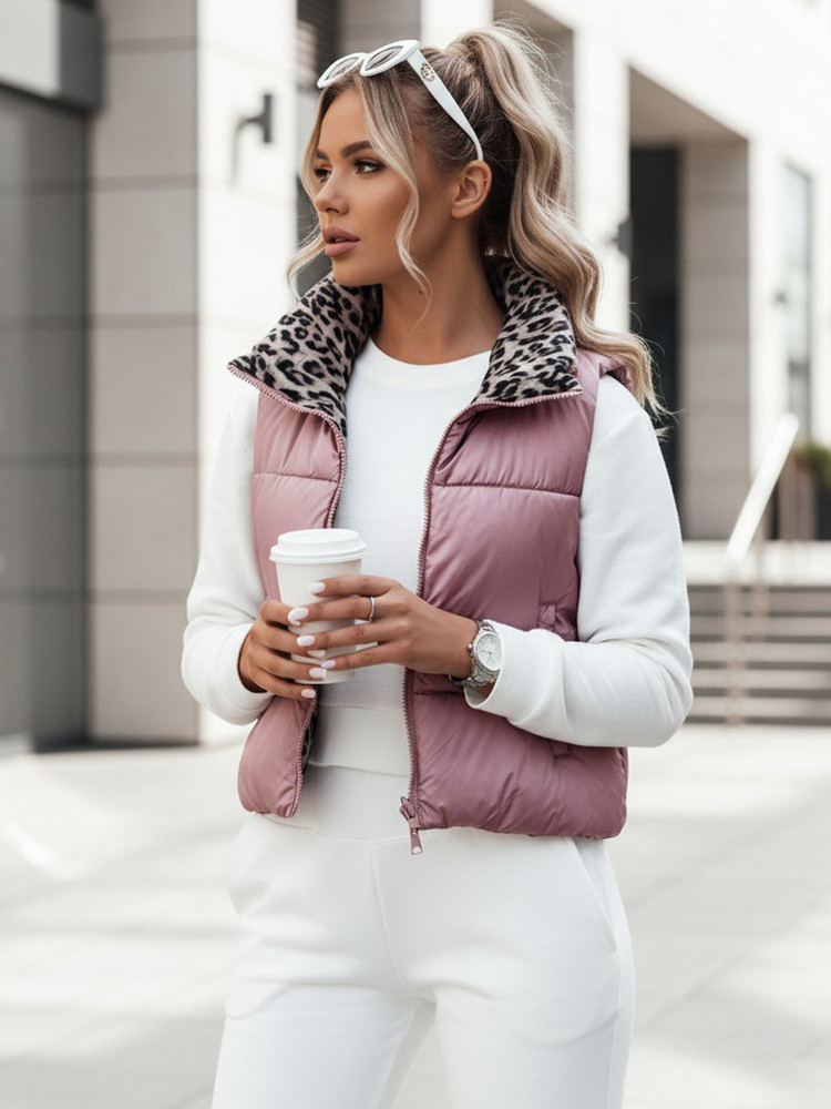 Dámská přechodná krátká prošívaná dvoucestná růžová vesta LEOVELLA FashionStreet TY5492
