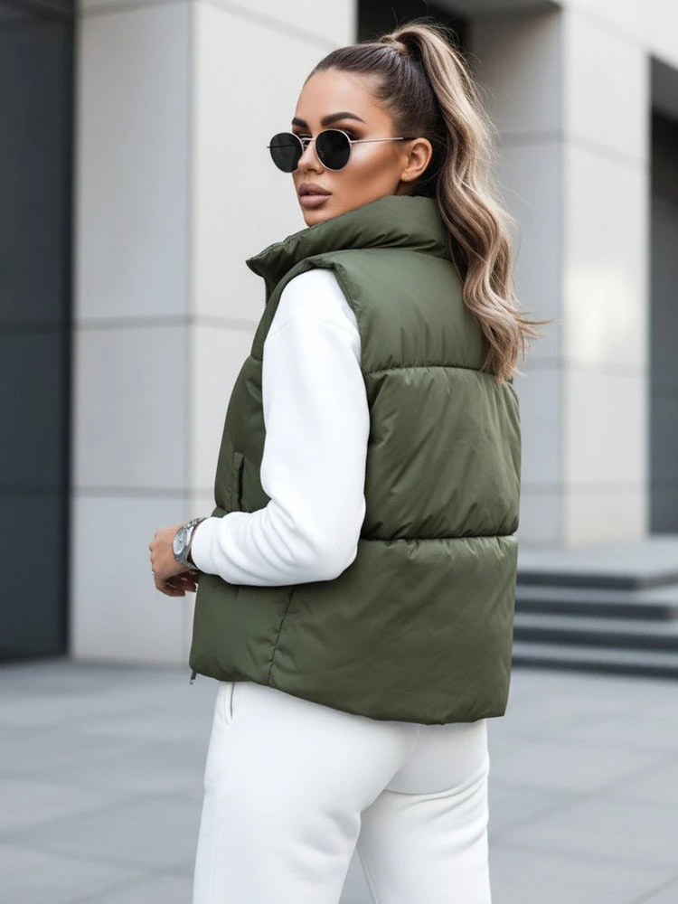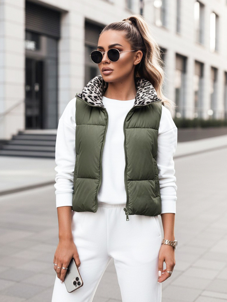 Dámská přechodná krátká prošívaná dvoucestná zelená vesta LEOVELLA FashionStreet TY5496