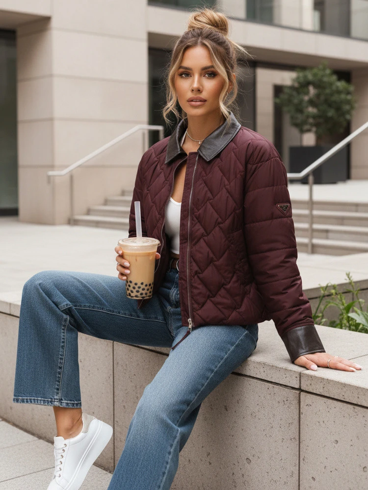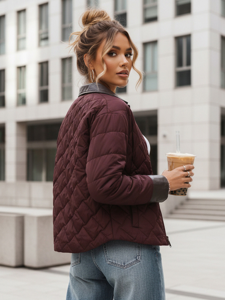 bunda má krátký prošívaný střih do pasu, který poskytuje volnost pohybu a hodí se ke každodennímu stylu.