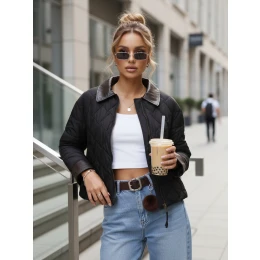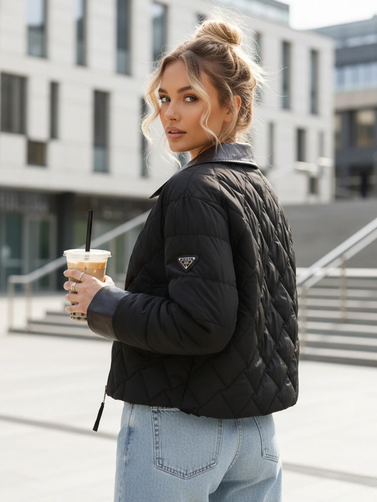 bunda má krátký prošívaný střih do pasu, který poskytuje volnost pohybu a hodí se ke každodennímu stylu.