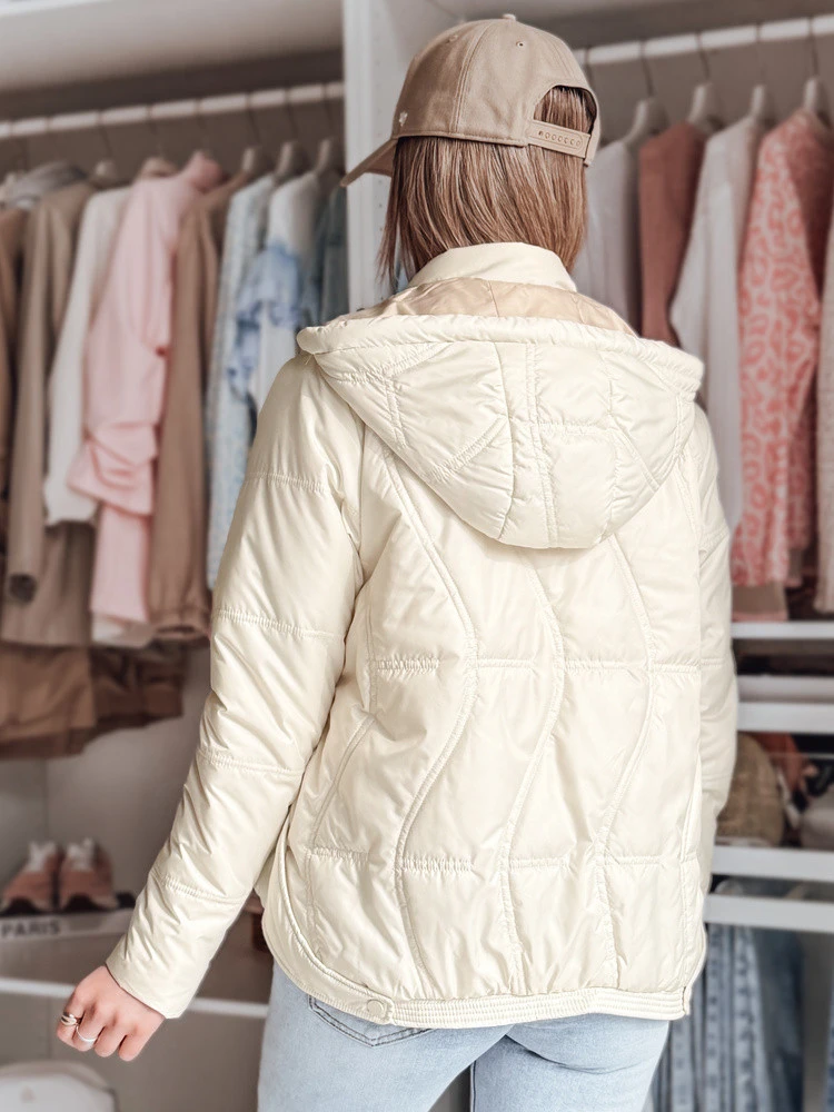 Krátká prošívaná dámská bunda ideální pro přechodná roční období. Model se zapínáním na zip a zipem pro pohodlí a ochranu před chladem. Nastavitelná kapuce umožňuje přizpůsobení povětrnostním podmínkám a ozdobné kapsy na patentky dodávají šmrnc. Klasické prošívání dodává stylový nádech a podtrhuje střih.
