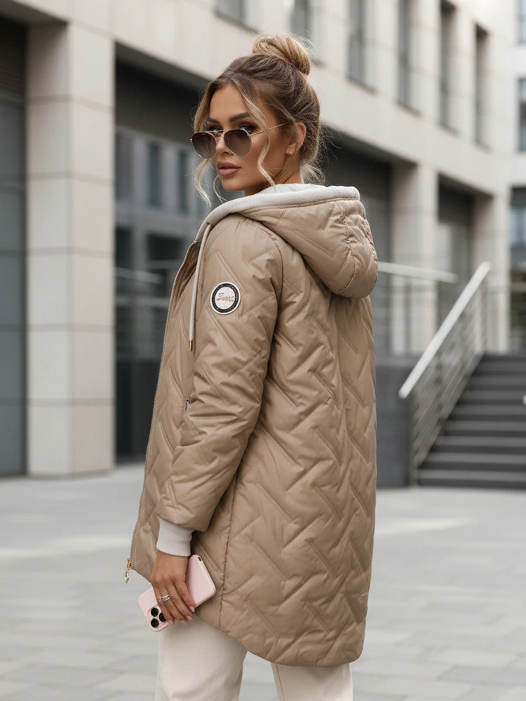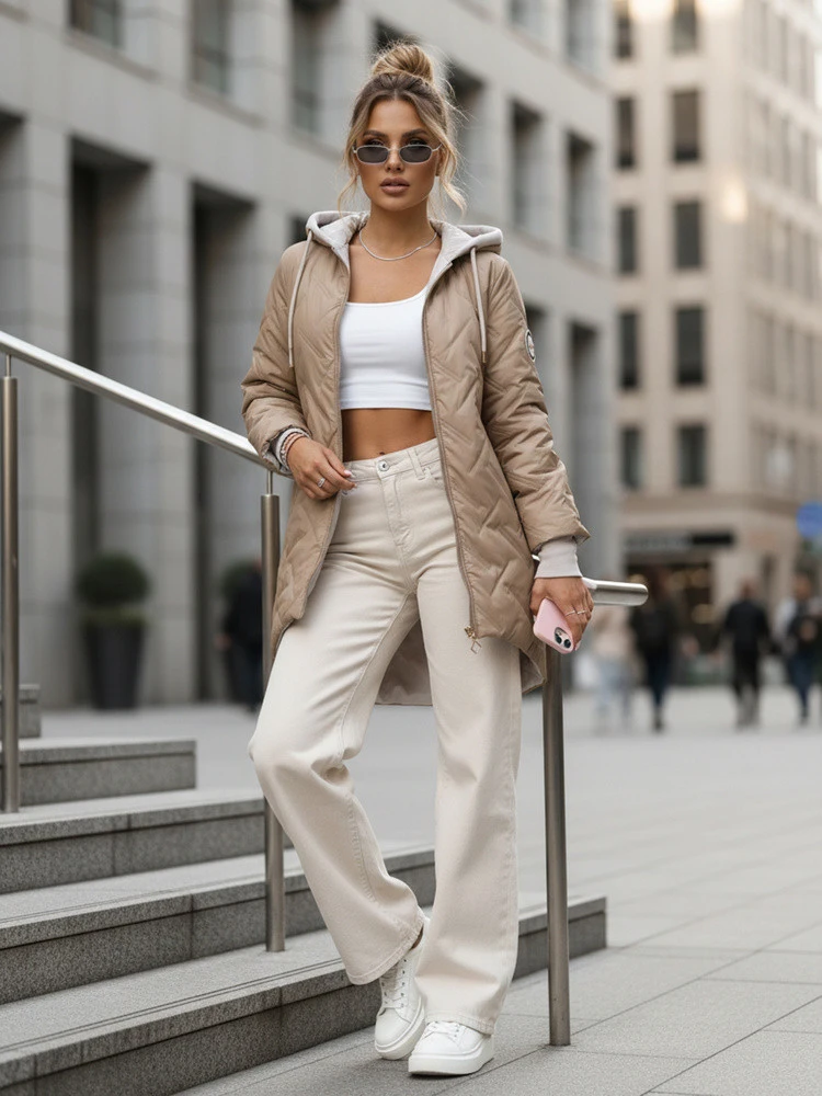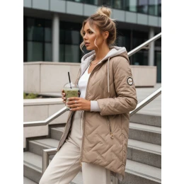 Dámská přechodná prošívaná bunda s prodlouženým střihem béžová TY5612