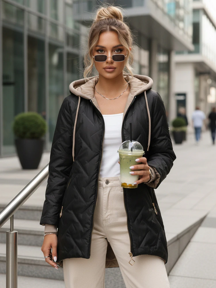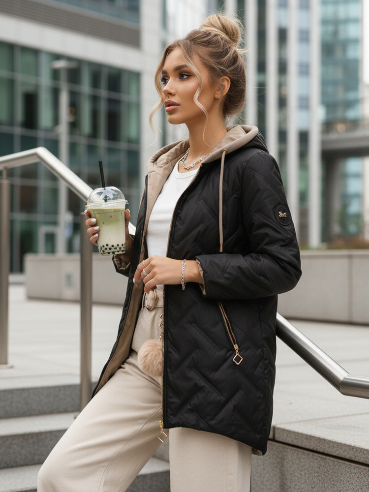 Dámská přechodná prošívaná bunda s prodlouženým střihem černá TY5606