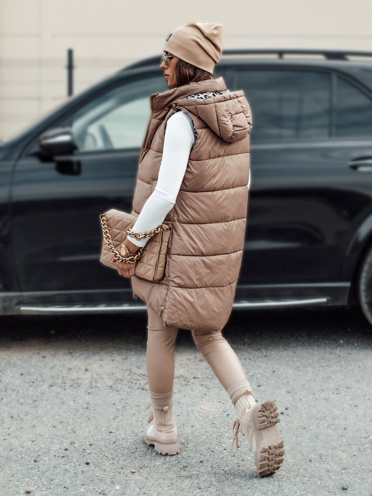 Dámská přechodná prošívaná vesta ELEGANCIO s kapucí oboustranná velbloudí FashionStreet TY4656