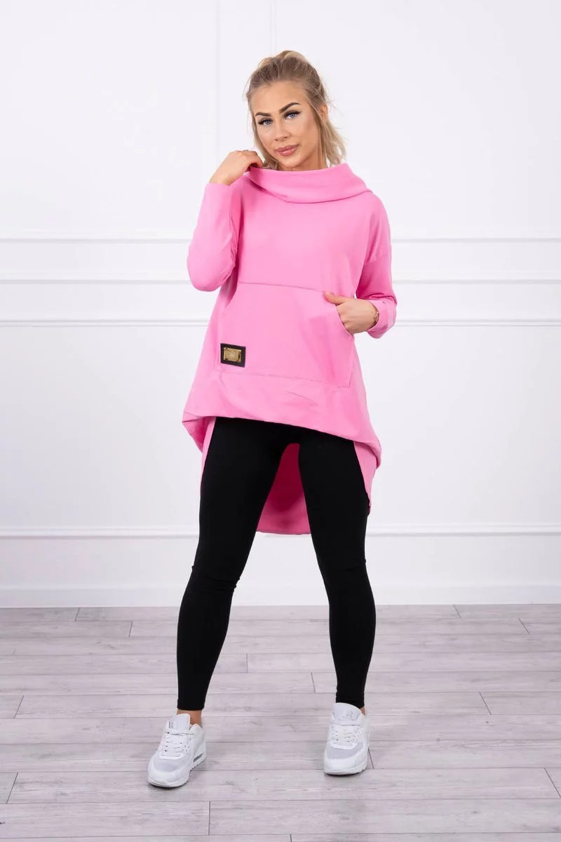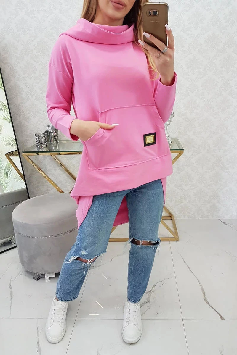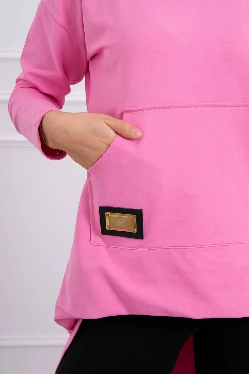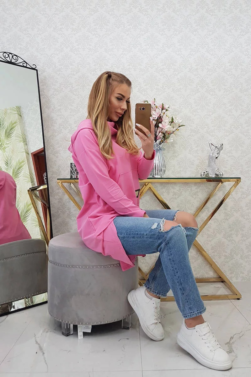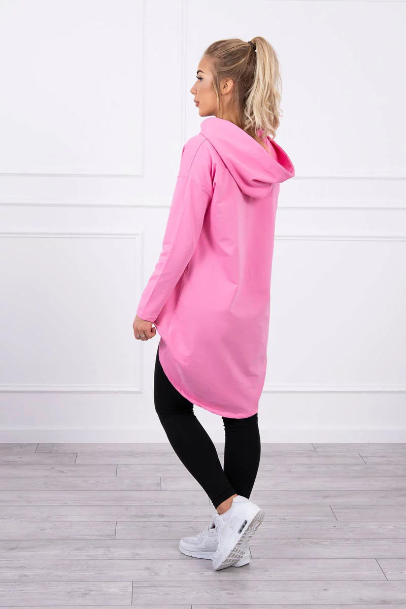 Přidání recenze k Dámská prodloužená mikina s kapucí 9116 Růžová - K-Fashion