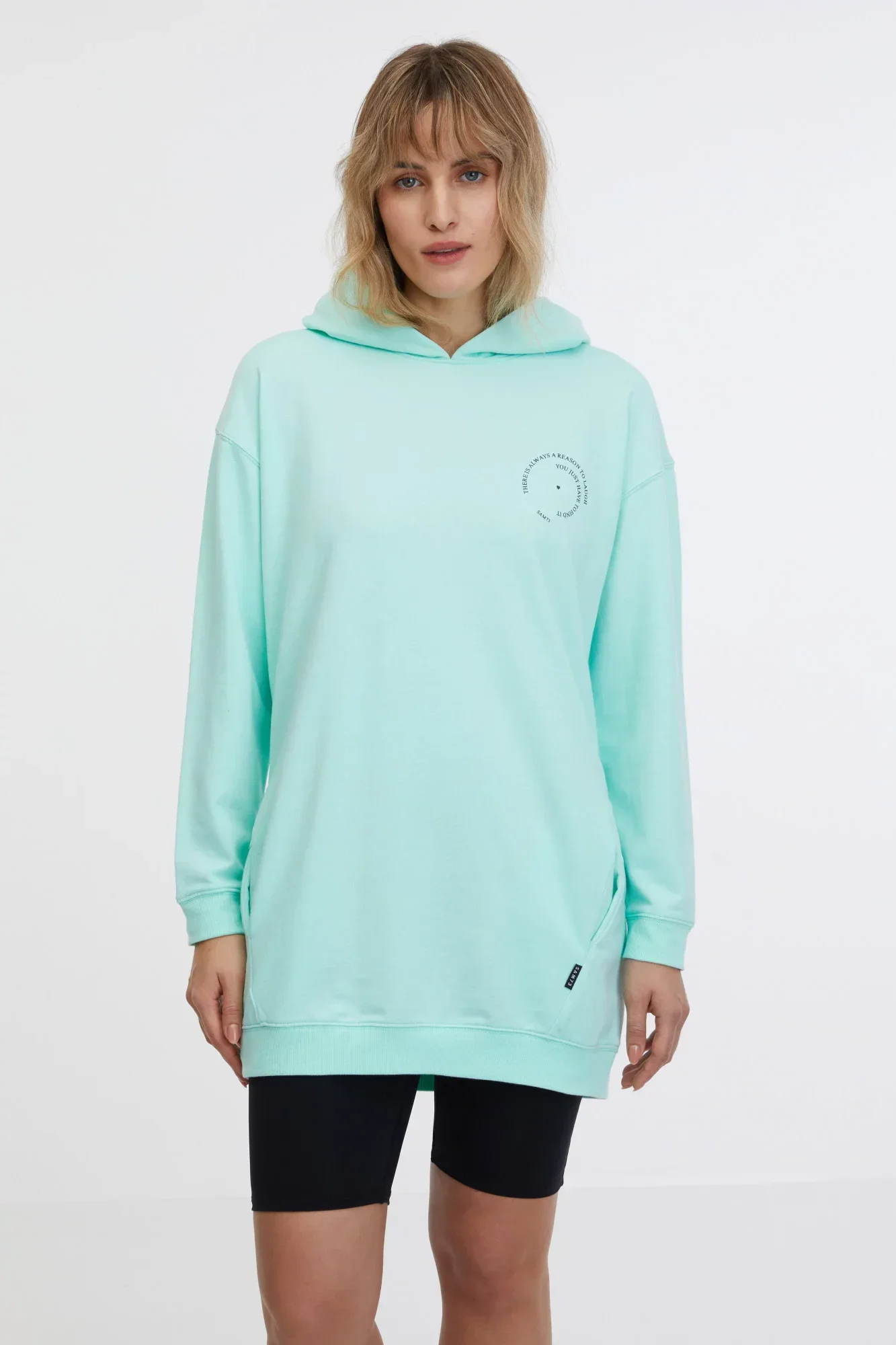 Stylová dámská mikina s kapucí s volným střihem a postranními kapsami.