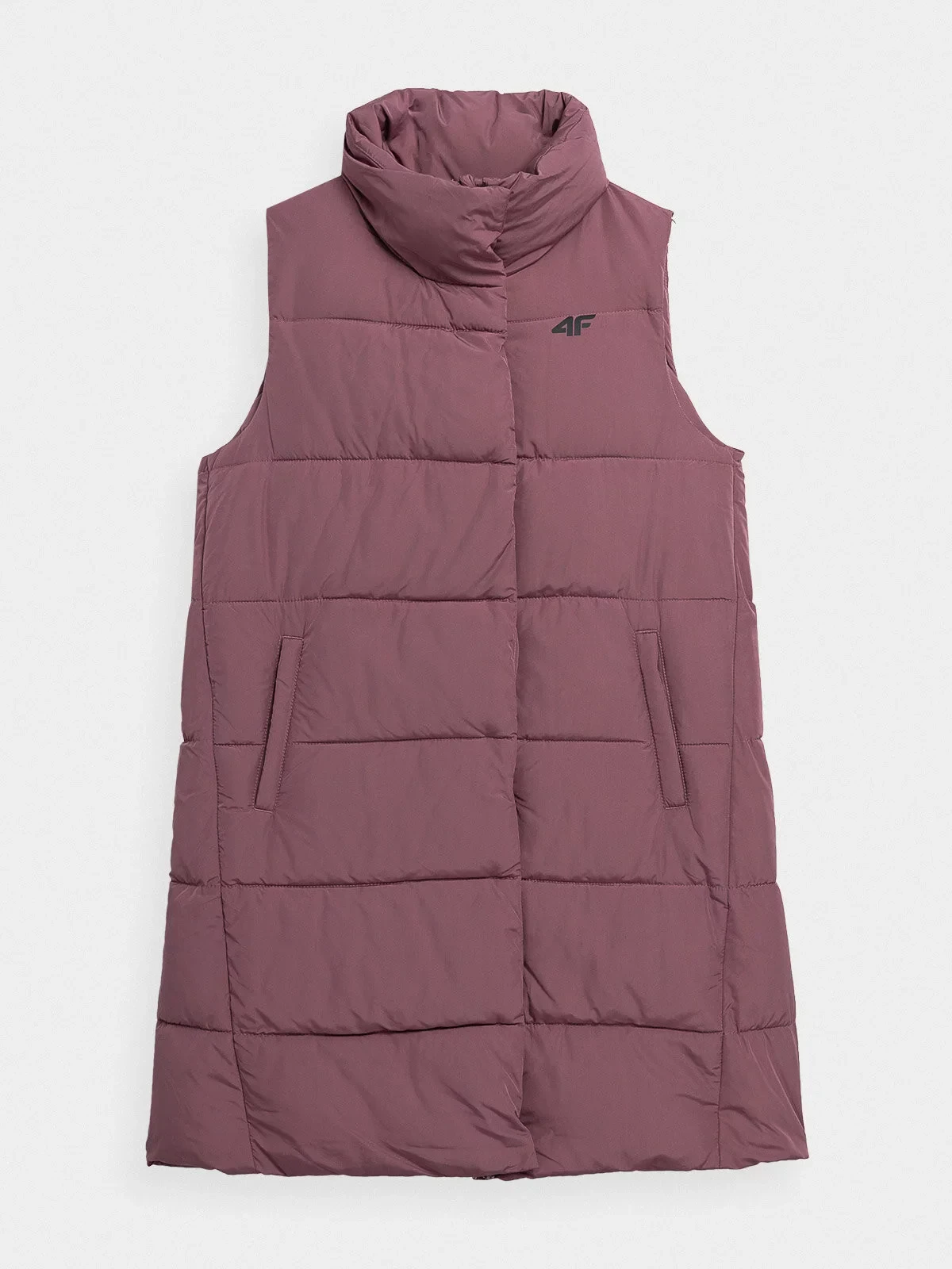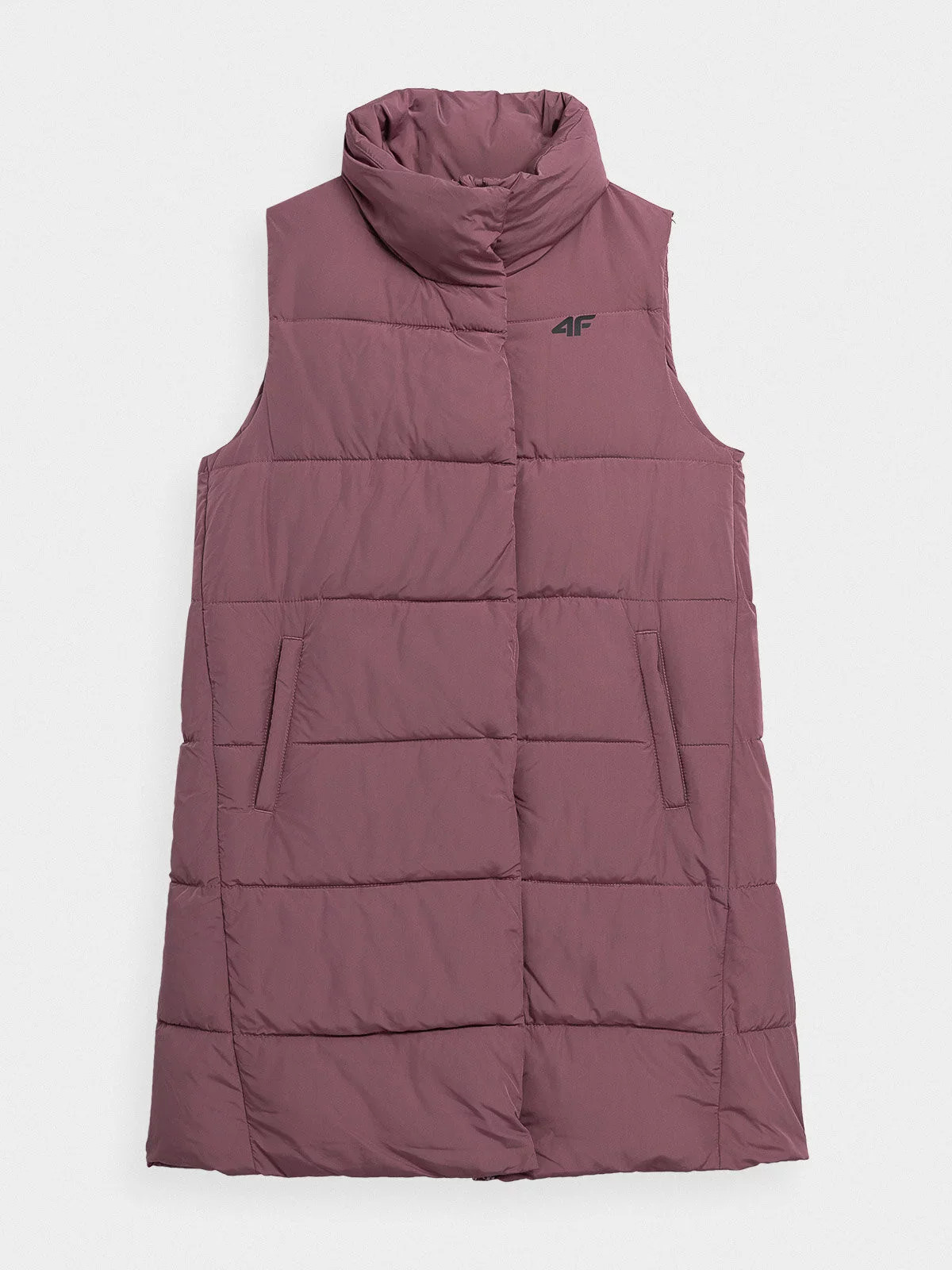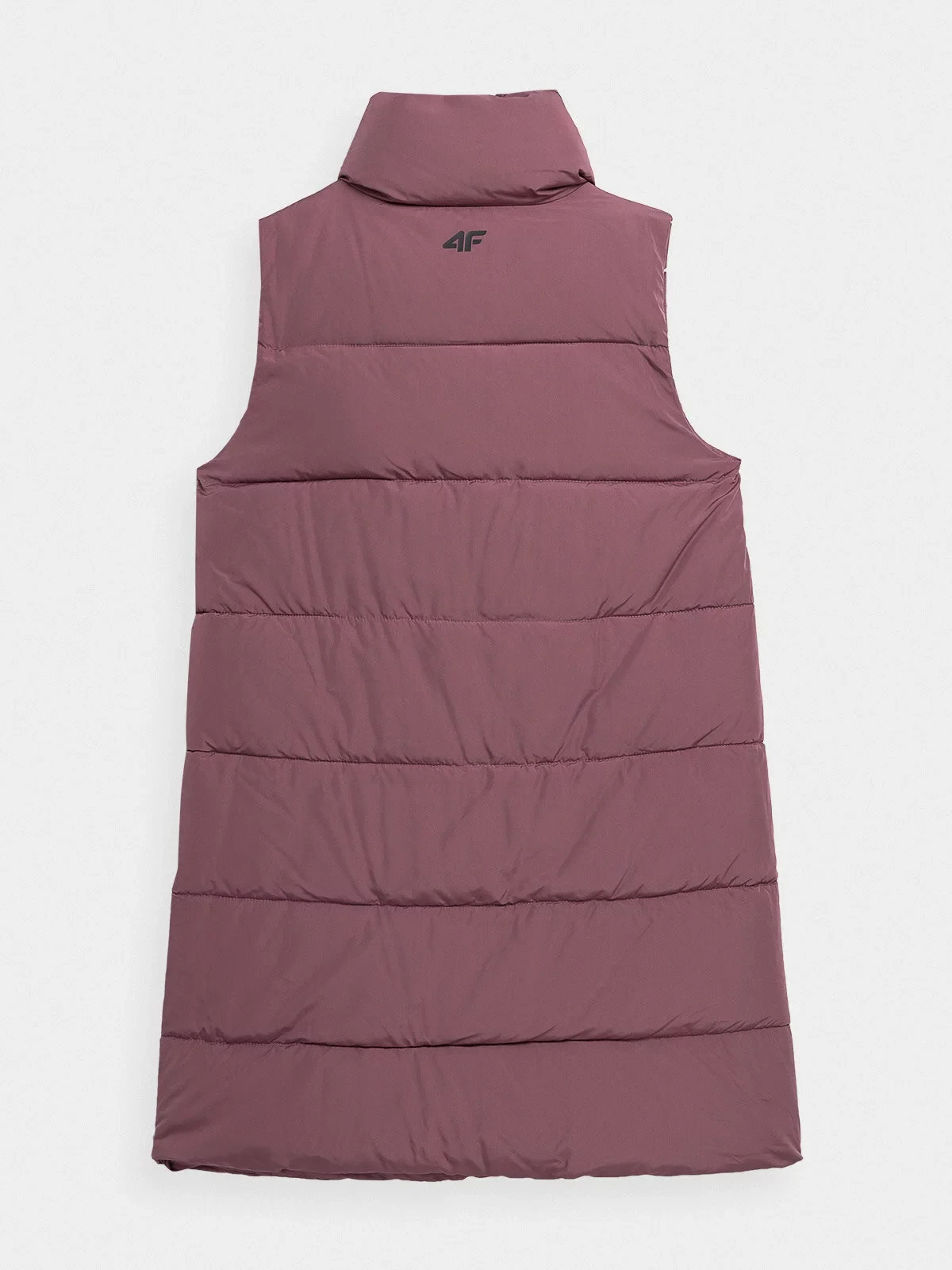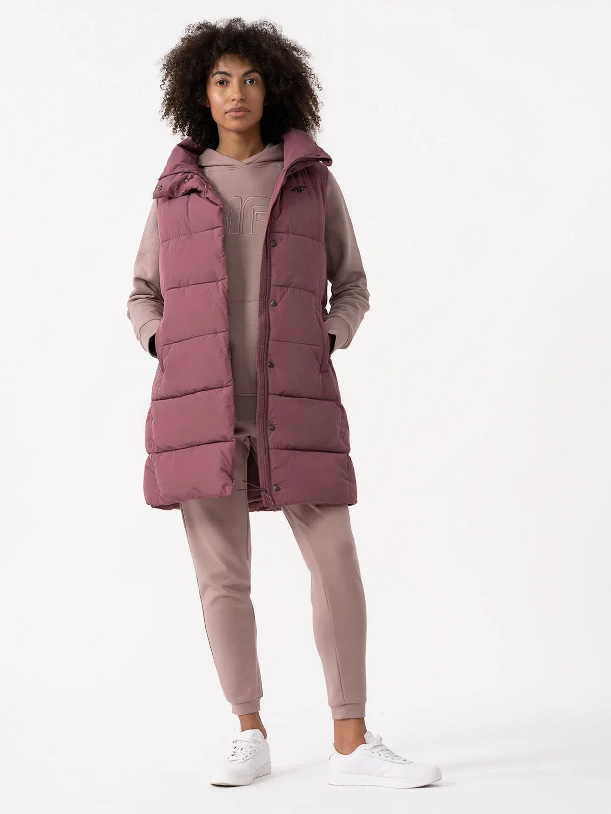 Dámská prošívaná vesta 4F. Díky syntetické péřové výplni a dlouhému střihu vám zajistí pohodlí i v chladnějších dnech. Vybavena hydrofobní impregnací materiálu, která vám poskytne ochranu před nepříznivými povětrnostními podmínkami.
