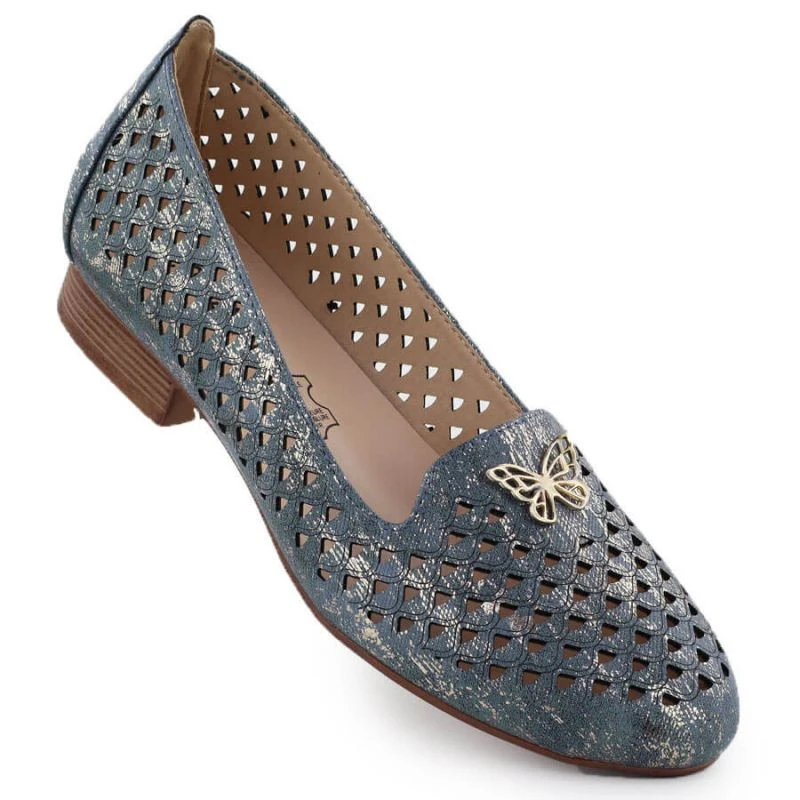 Dámská prolamovaná obuv na nízkém podpatku modrá M.Daszynski SA222-3