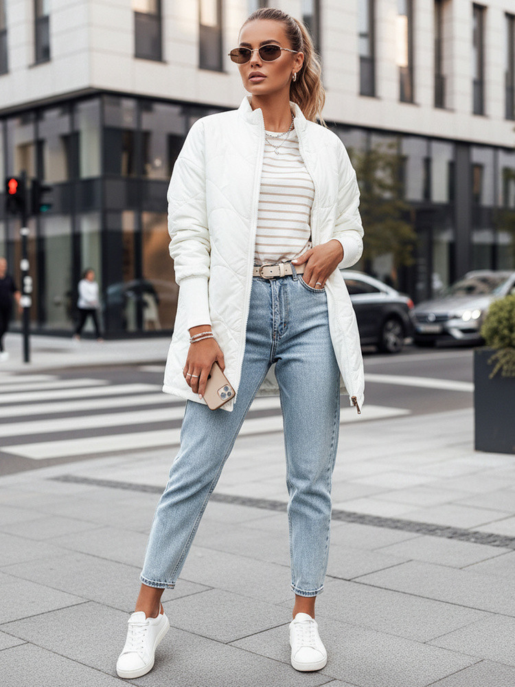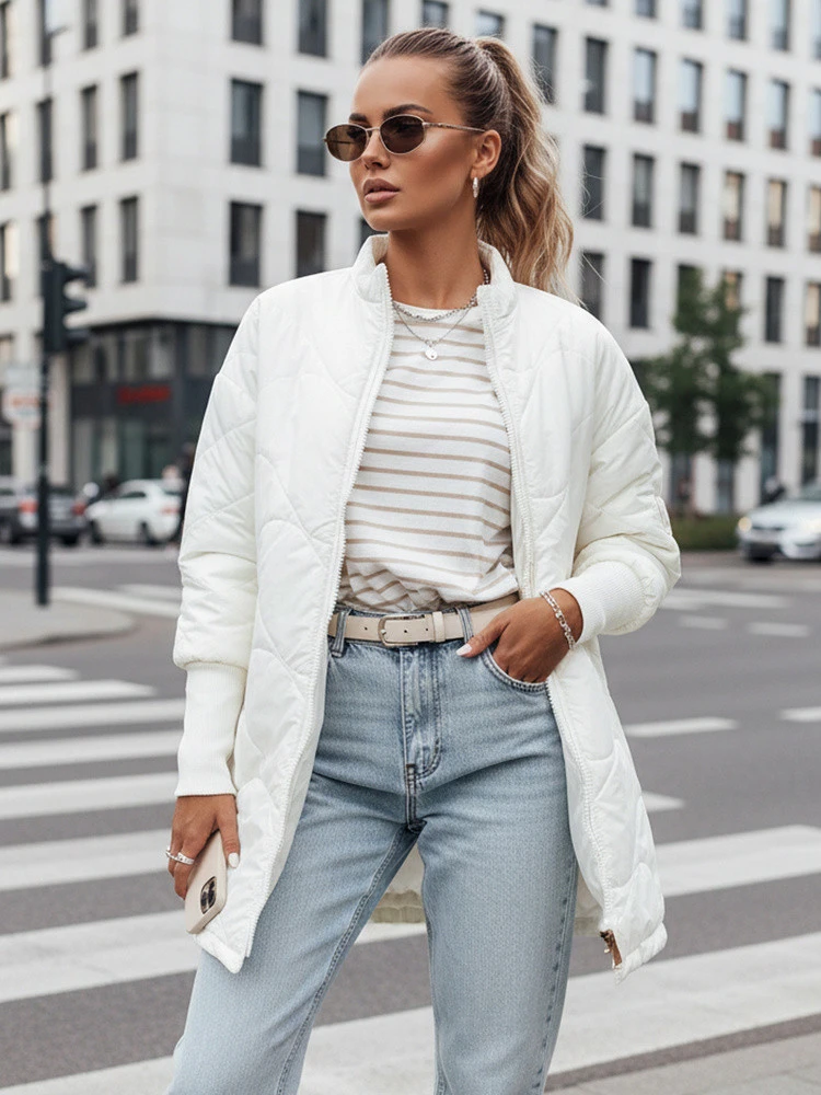 Prošívaná bunda ARANA je fantastickou volbou pro tuto sezónu! Model má rukávy zakončené delším lemem, který vypadá velmi efektně. Kapsy jsou umístěny v úrovni pasu. Model je zakončen stojáčkem, bez kapuce. Ideální pro chladnější jarní a letní večery.