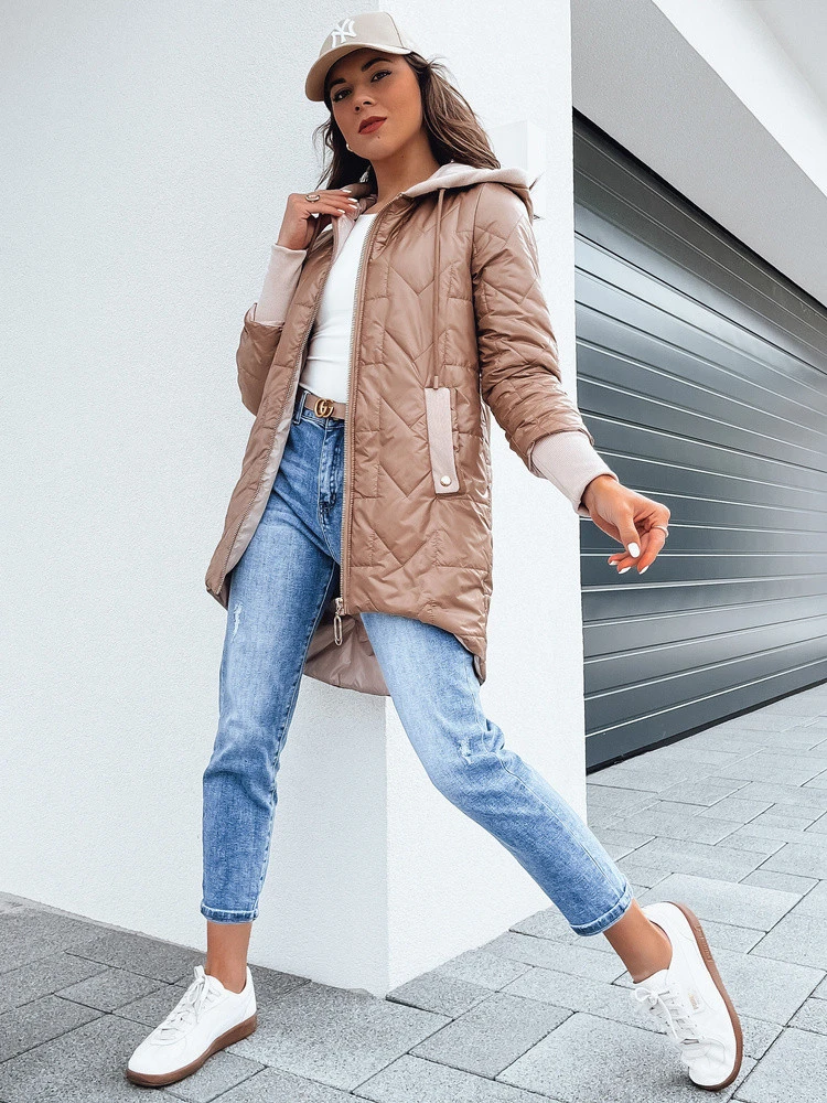Přechodová prošívaná bunda s kapucí je kvintesencí stylu a funkčnosti. Zapíná se na zip, je vybavena praktickými kapsami a mírně prodlouženým zadním dílem, takže se uplatní za všech podmínek. Je ideální pro vrstvení, poskytne vám ochranu před větrem a chladem, aniž by vás omezovala ve volnosti pohybu. Praktická a elegantní volba pro aktivní a módní ženu.