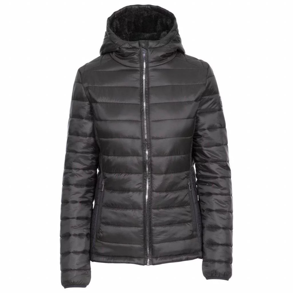 Dámská prošívaná bunda Trespass Valerie na zip s kapucí a syntetickou výplní.