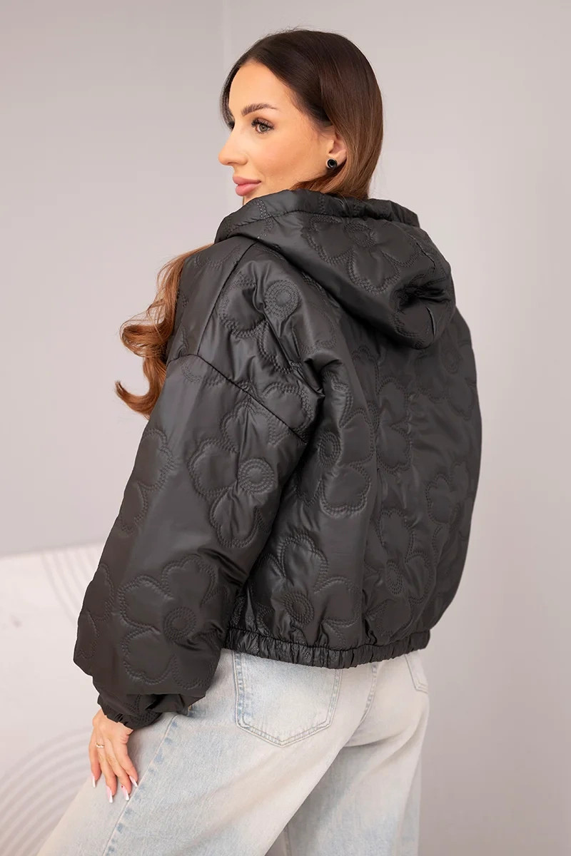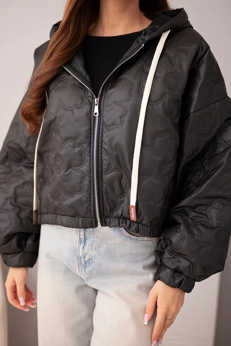 - Prošívaná dámská bunda s ozdobným ražením květin