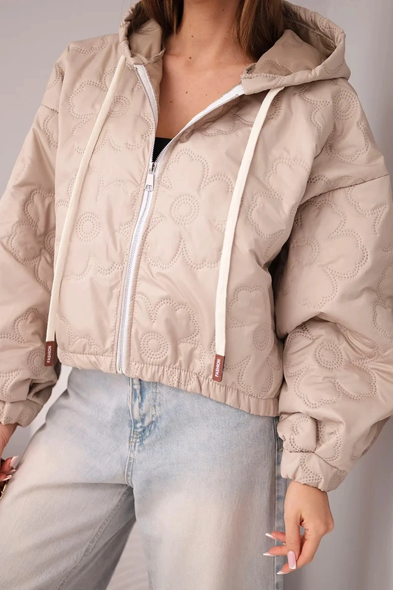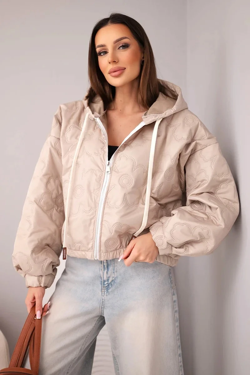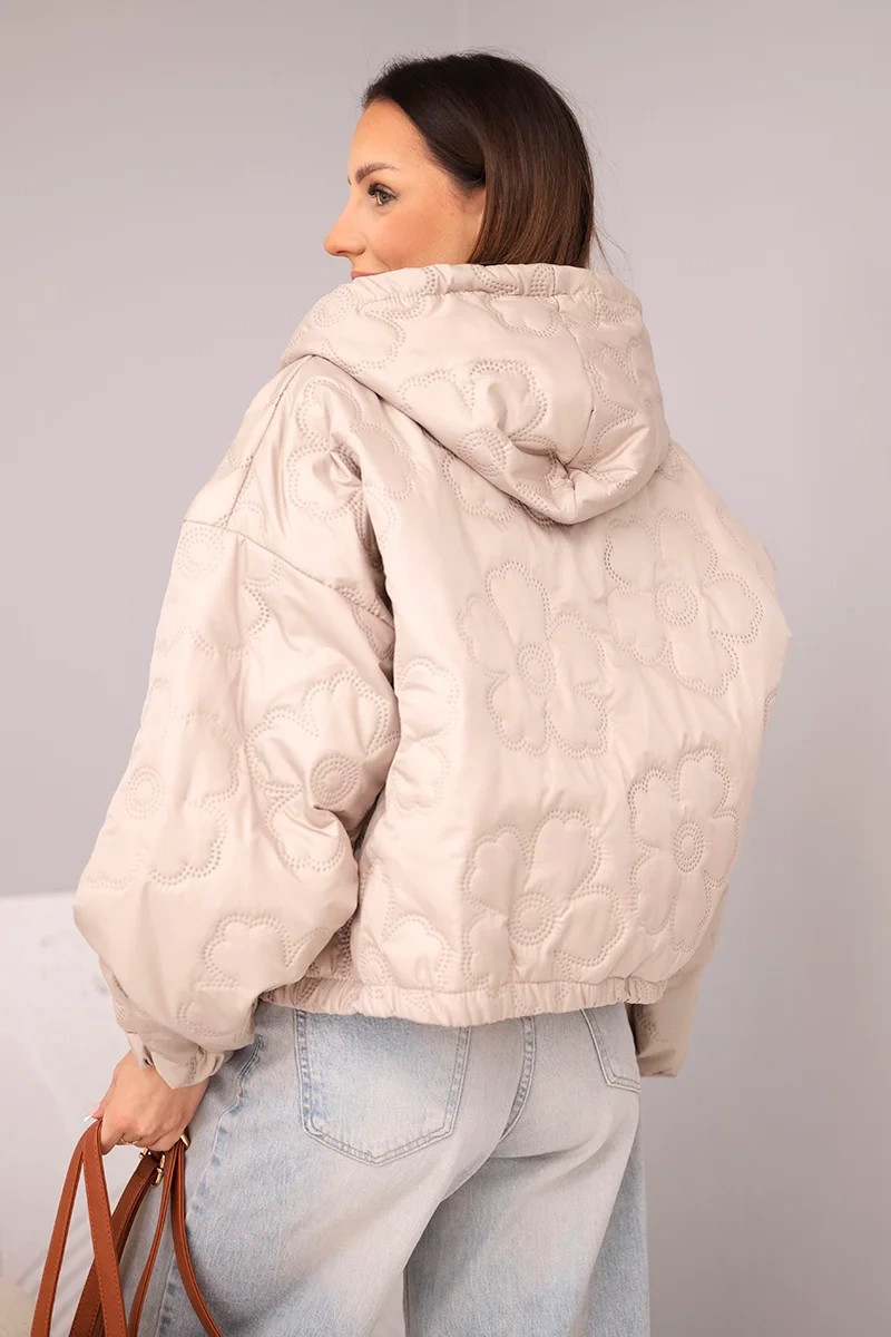 - Prošívaná dámská bunda s ozdobným ražením květin