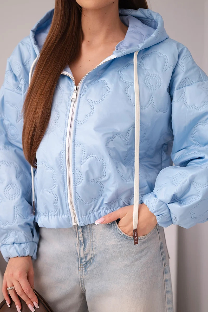 1. Dámská prošívaná bunda s kapucí a ozdobným květinovým model 21998366 modrá - K-Fashion